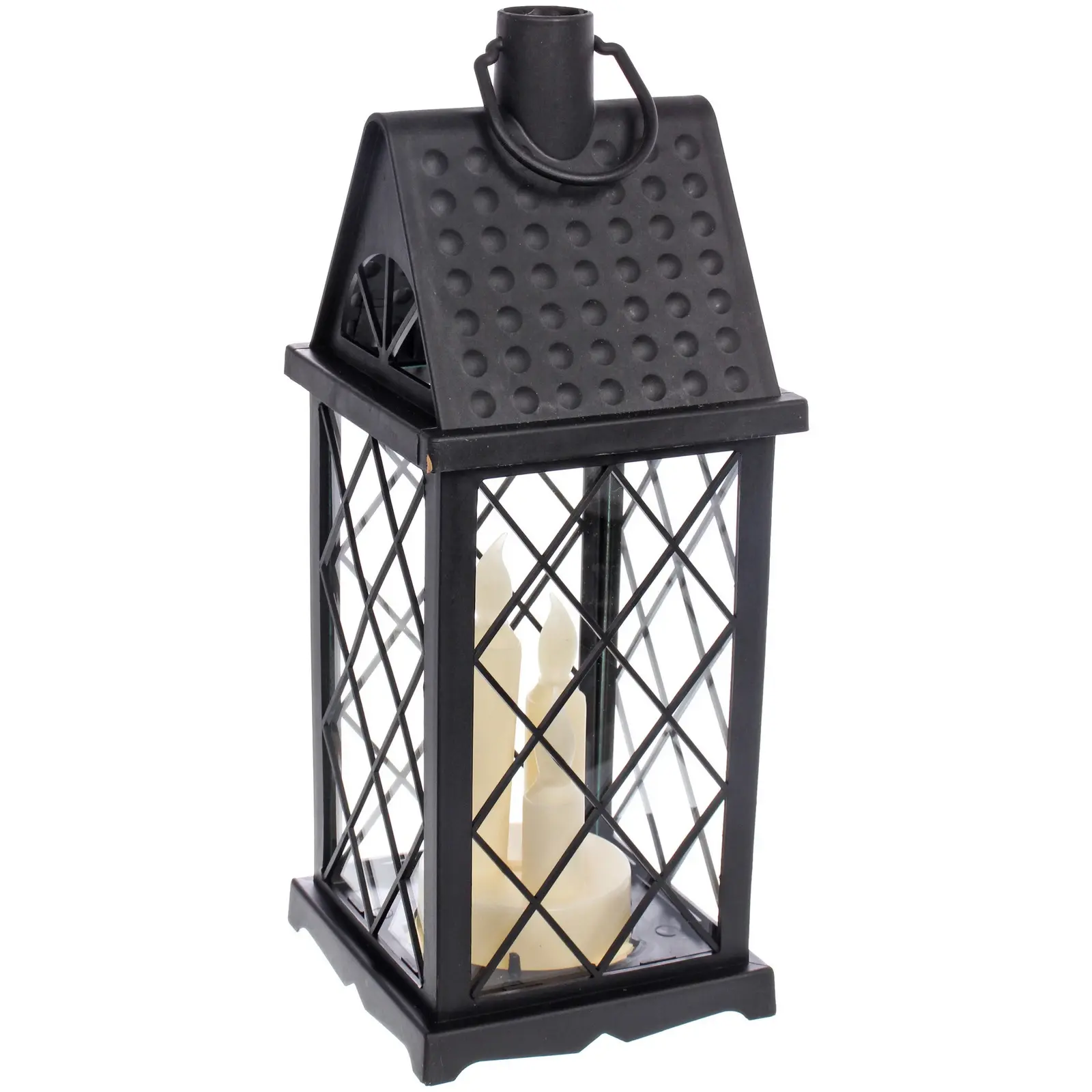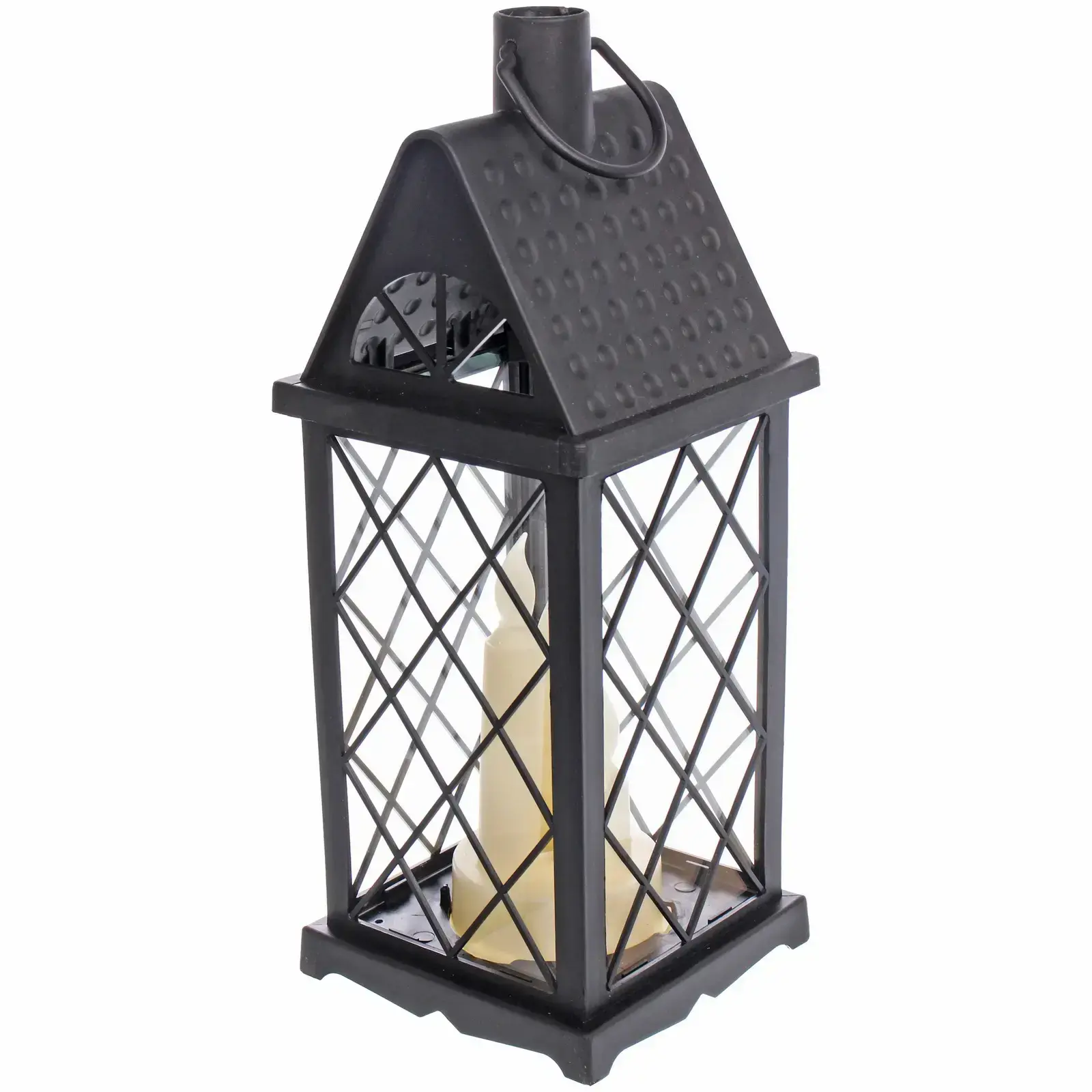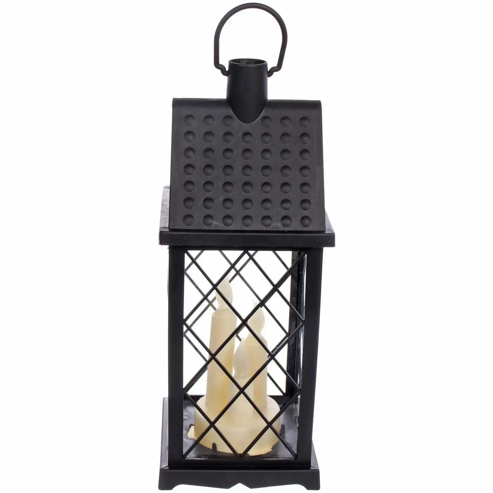 Компактные размеры (13×13×33 см) позволяют разместить фонарь на столе, камине или садовой террасе. Прочная конструкция из металла и пластика устойчива к погодным условиям. Питание от 3 батареек AAA обеспечивает автономную работу до 50 часов.