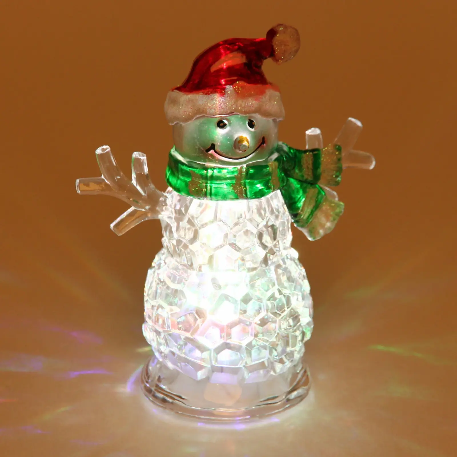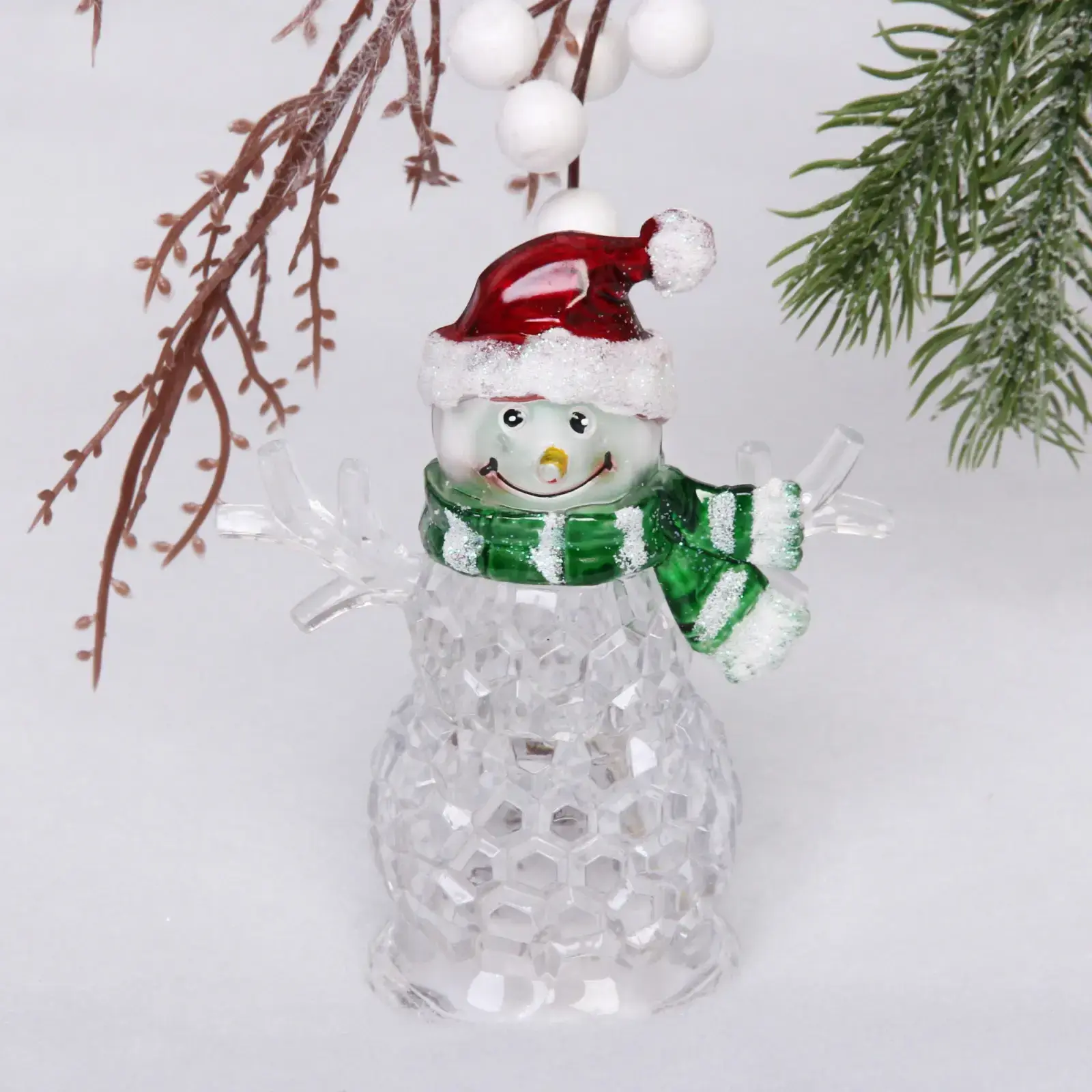 - Прозрачный корпус с граненой текстурой преломляет свет, создавая эффект мерцающих снежинок