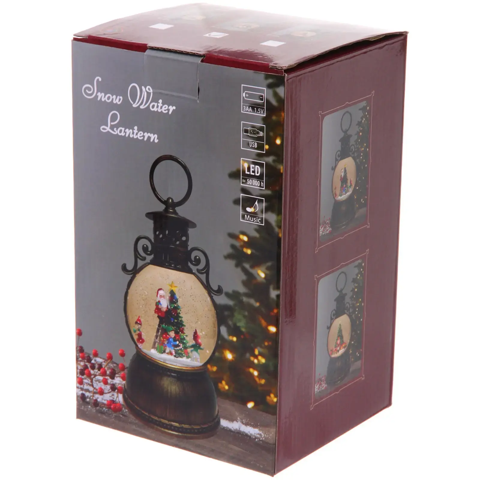 Лампа работает от 3 батареек типа AA или через USB, что делает её удобной для использования в любом месте. Она отлично подходит как для домашнего декора, так и для создания праздничной атмосферы на мероприятиях. С помощью ручки в верхней части фонаря, вы можете легко переносить его или подвешивать в нужном месте.