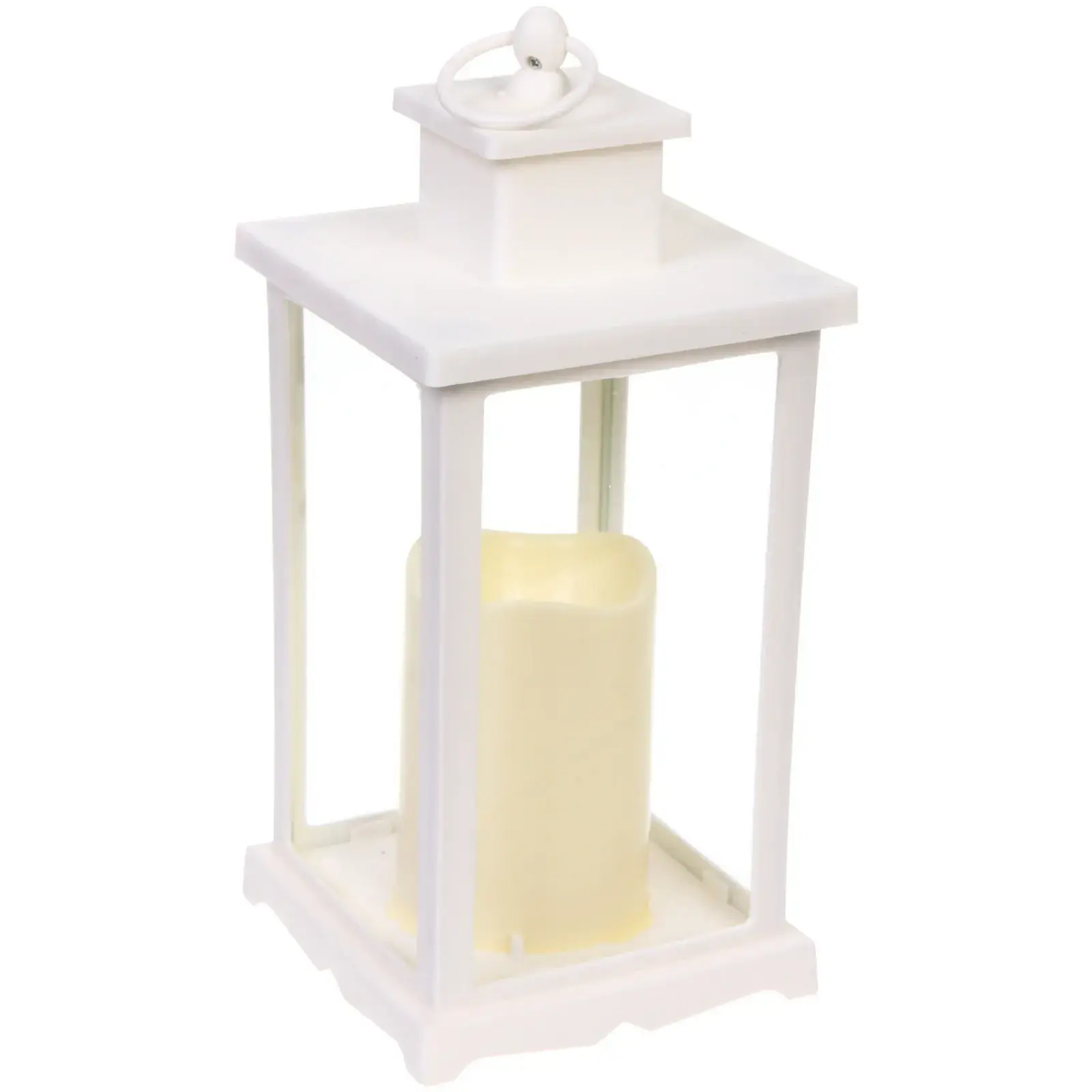 Размеры светильника составляют 13х13х29 см, что делает его компактным и удобным для размещения. Он выполнен из качественных материалов: металла и пластика, что обеспечивает долговечность и надежность. Белый цвет фонаря легко вписывается в любой интерьер, а его простая форма позволяет использовать его в различных декорациях.