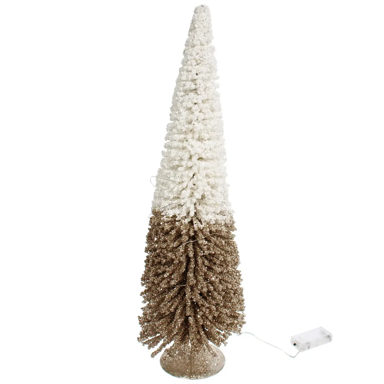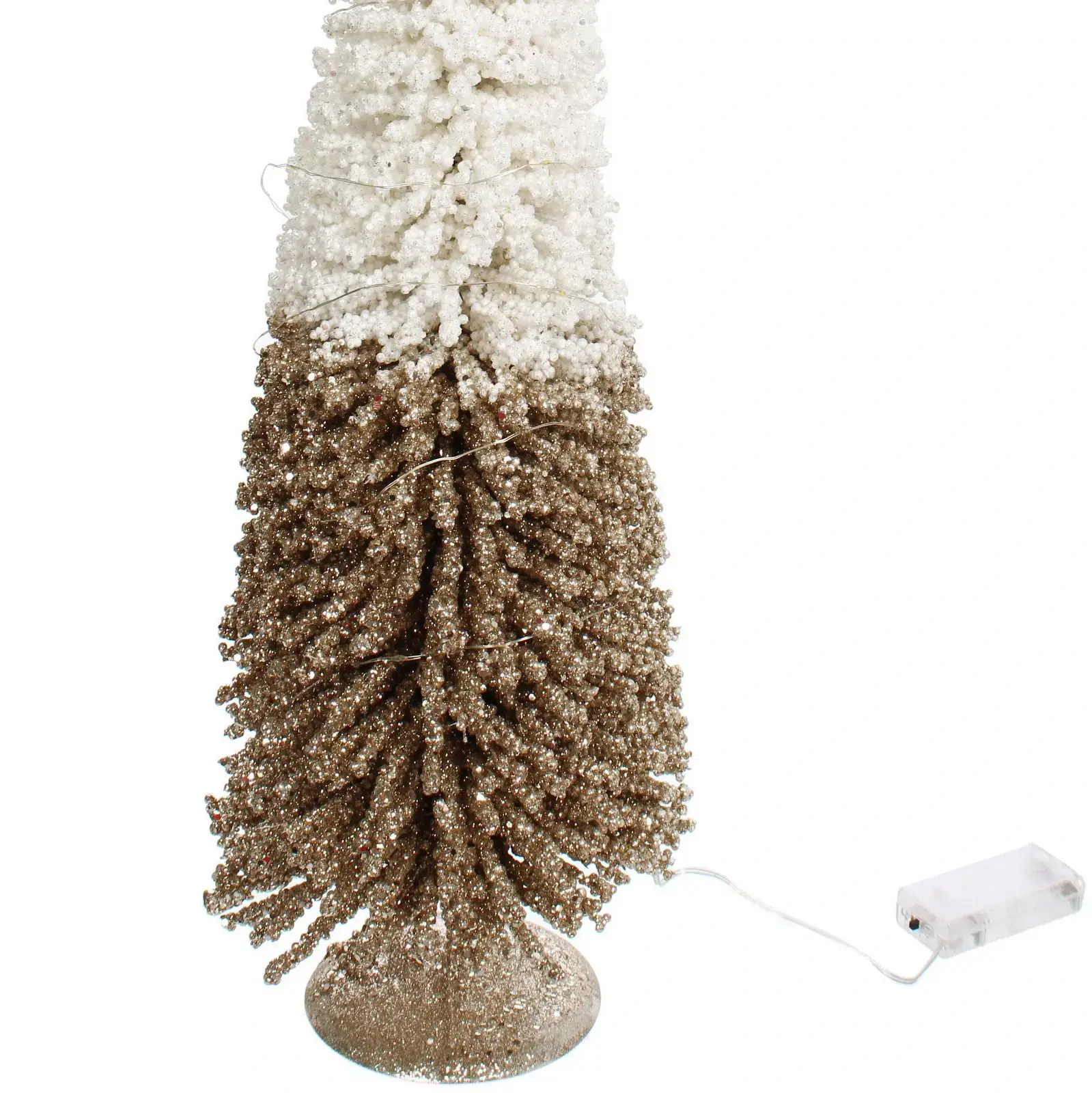 Размеры ёлки составляют 19 см в ширину и 60 см в высоту, что делает её идеальной для размещения на столе или полке. Цветовая гамма — золото и белый, что позволяет легко сочетать её с другими элементами декора. Не упустите возможность добавить этот стильный и уютный элемент в ваш дом!
