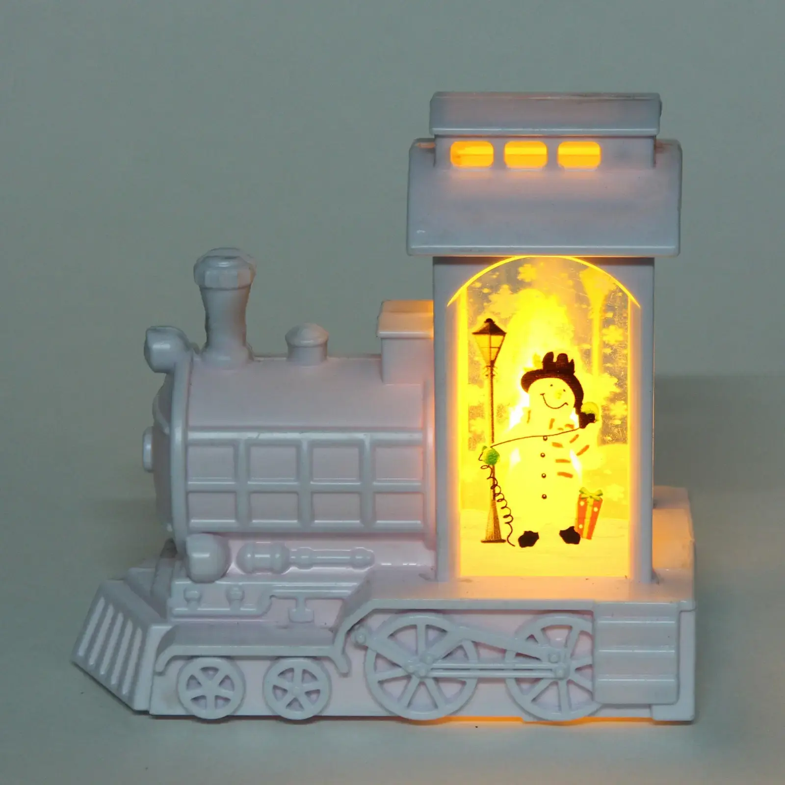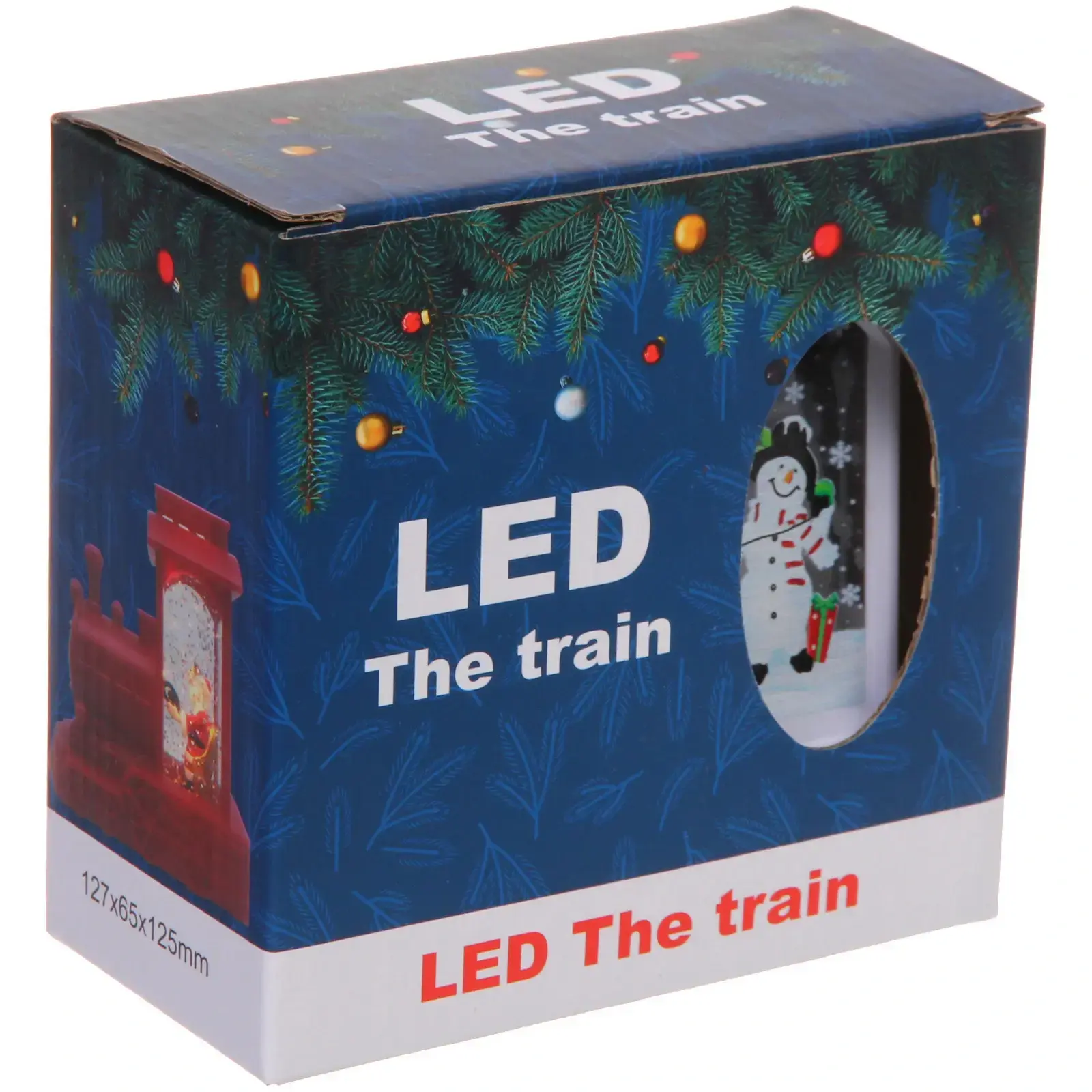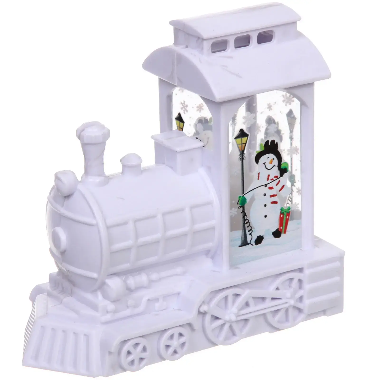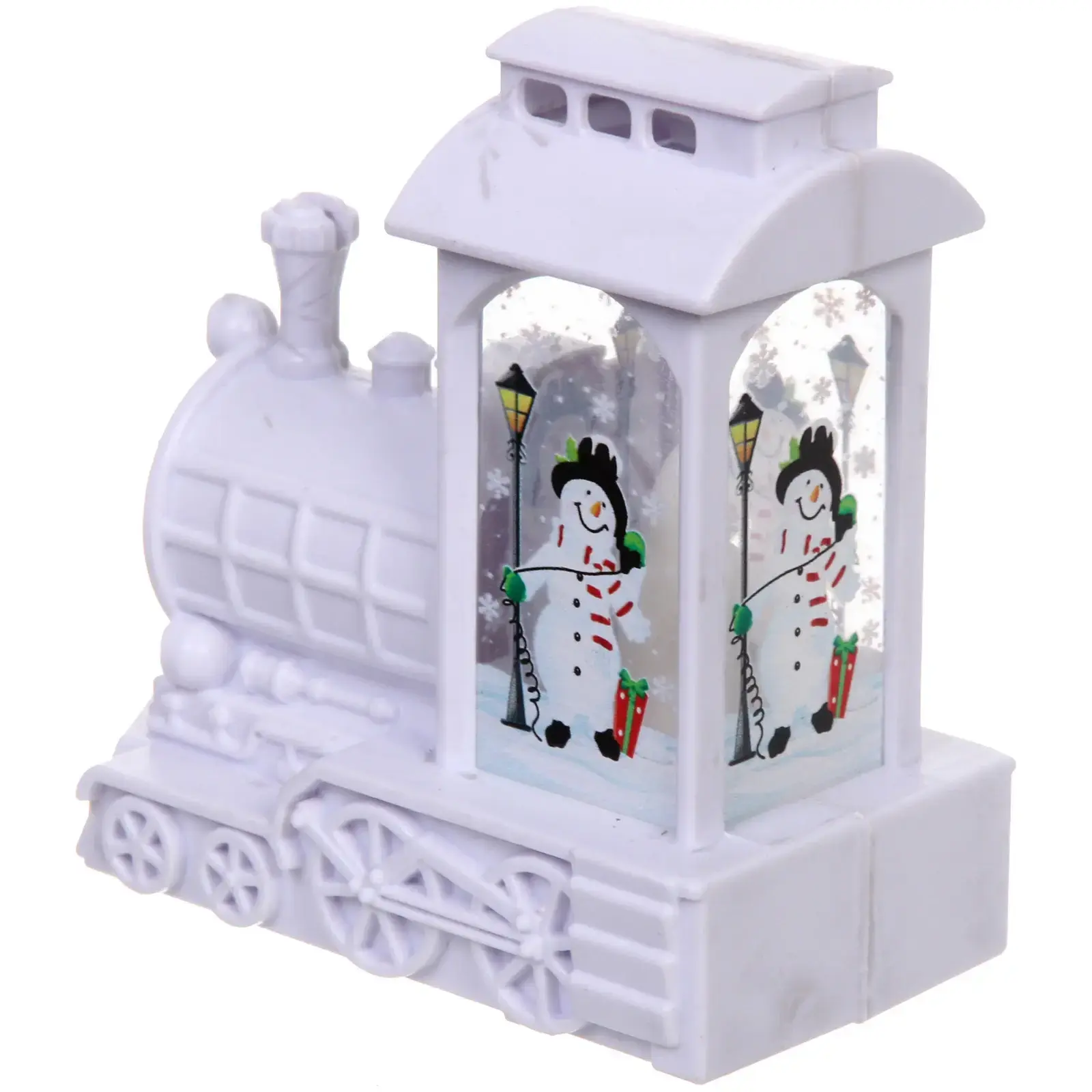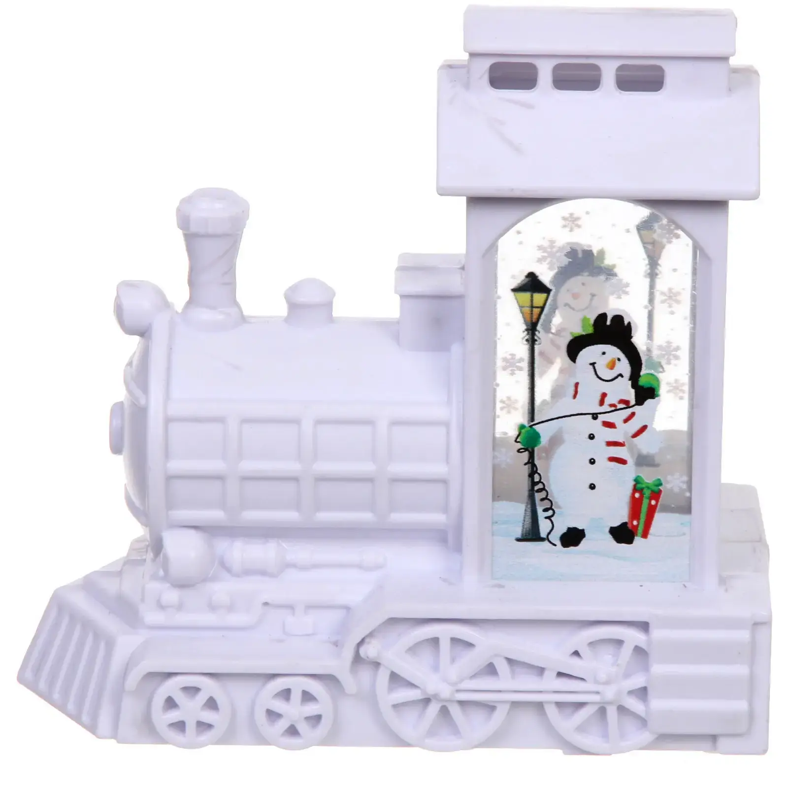Сувенир выполнен в виде паровоза, который освещает сцену с изображением снеговика и фонарного столба. Он идеально подходит для новогоднего оформления, а также может использоваться как ночник в детской комнате. Благодаря своему компактному размеру (12,5х11,5х5,5 см) он легко впишется в любой интерьер, будь то полка, стол или подоконник.