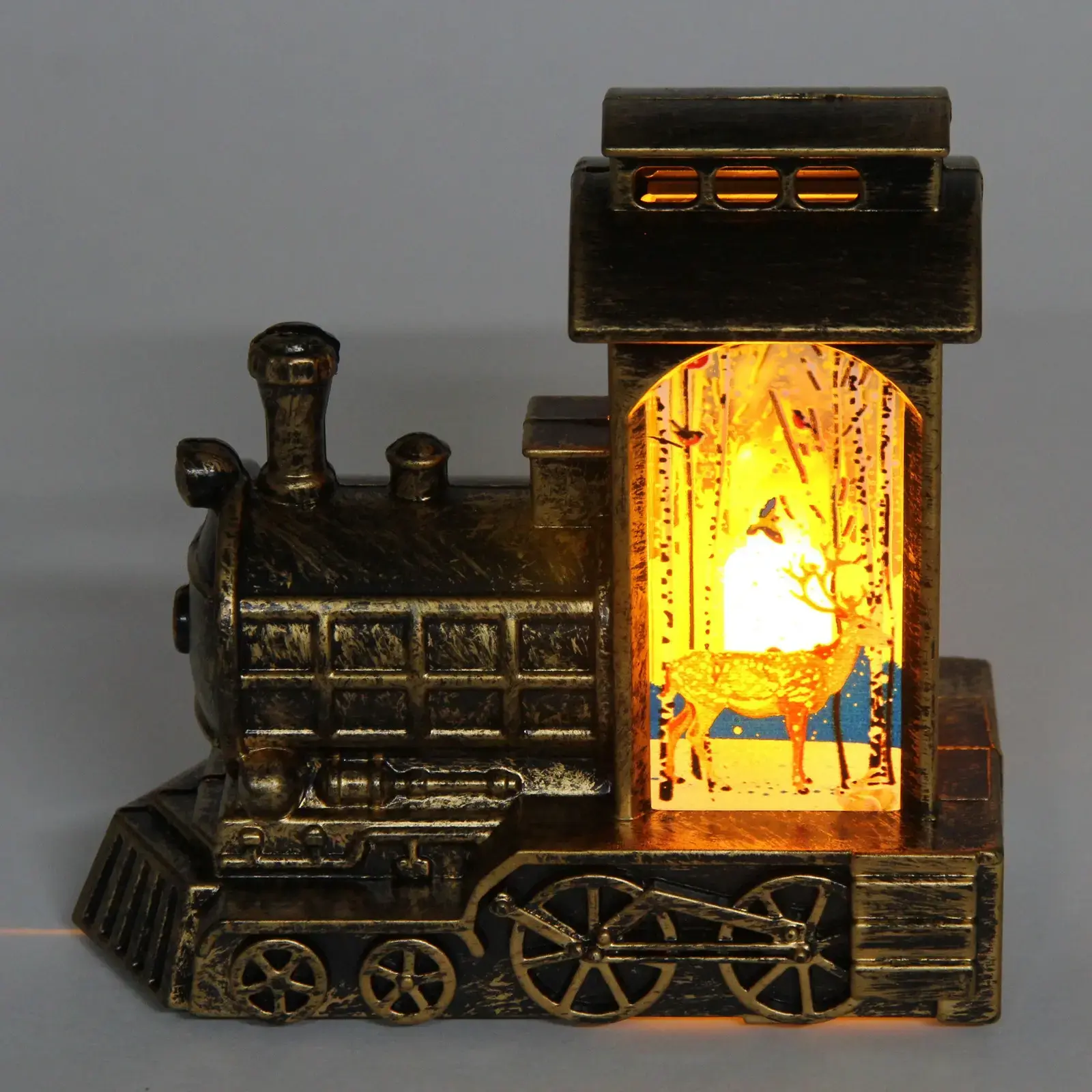 Сувенир выполнен в форме старинного паровоза, который привлекает внимание своим изысканным дизайном и яркой подсветкой. Он станет отличным дополнением к вашему праздничному оформлению или уютным элементом декора в повседневной жизни. Подсветка создает эффектный визуальный фон, который будет радовать глаз и поднимать настроение.