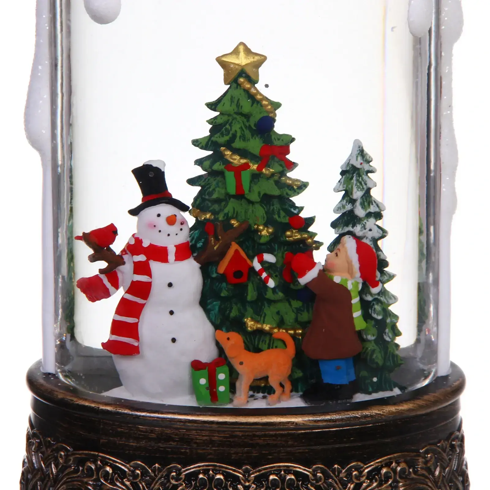 Размеры сувенира составляют 12 см в ширину, 8 см в глубину и 24,5 см в высоту. Прозрачный корпус с блестками создает эффект снега, а фигурки внутри добавляют дополнительный шарм. Этот сувенир станет отличным подарком для ваших близких или прекрасным украшением для вашего дома.