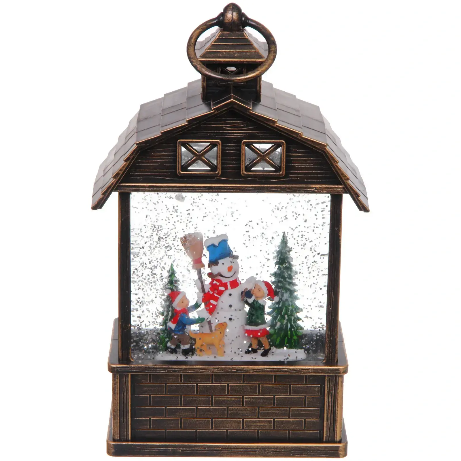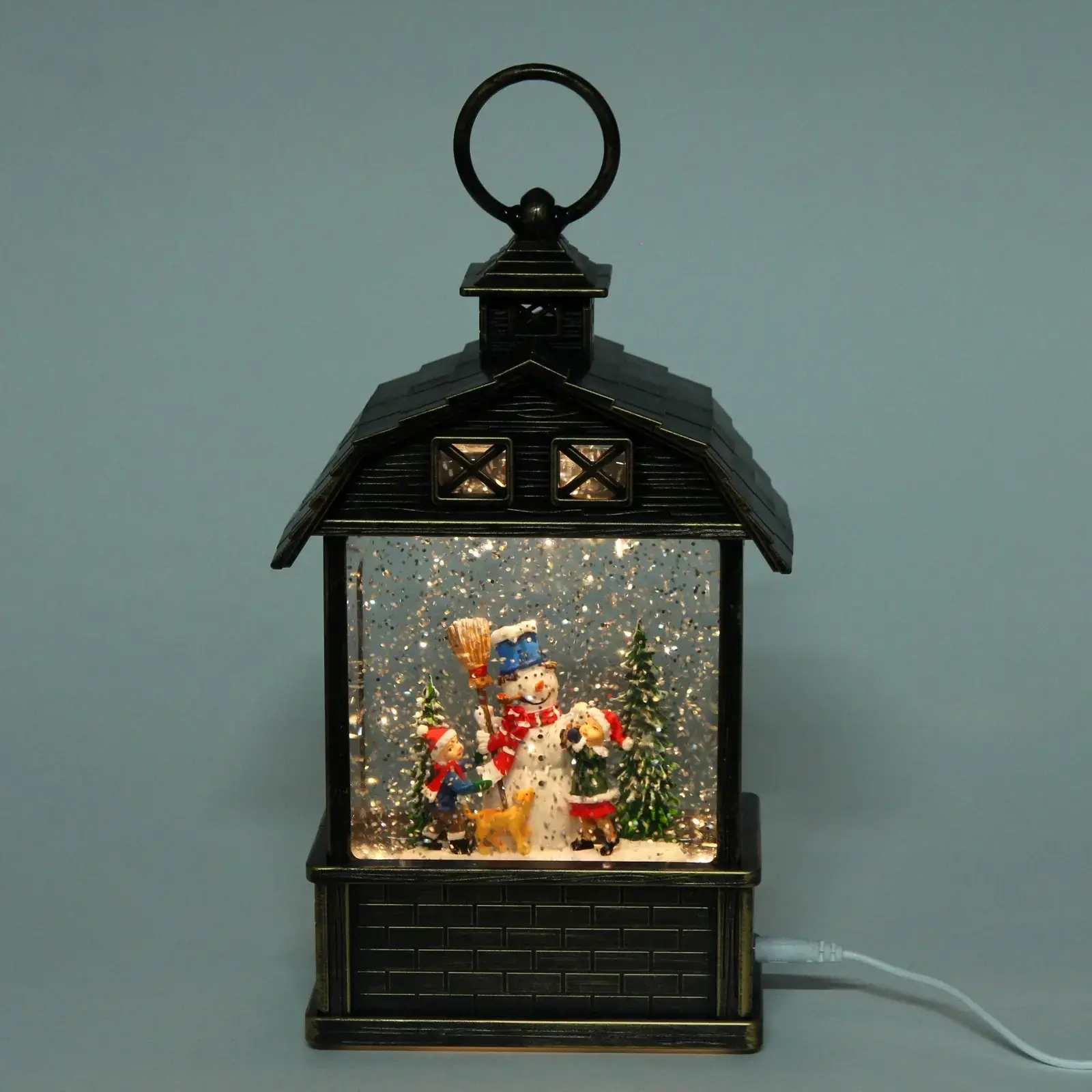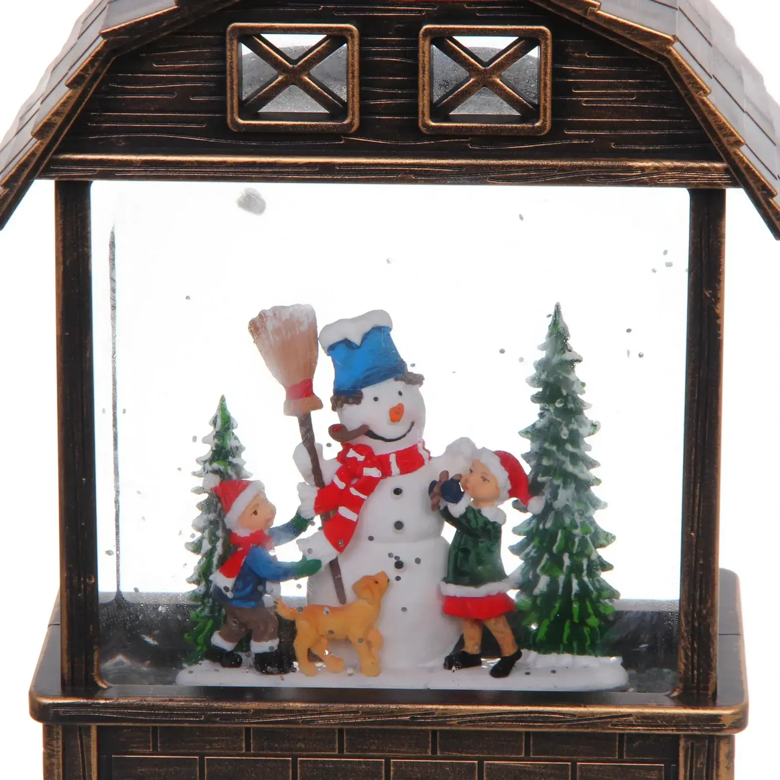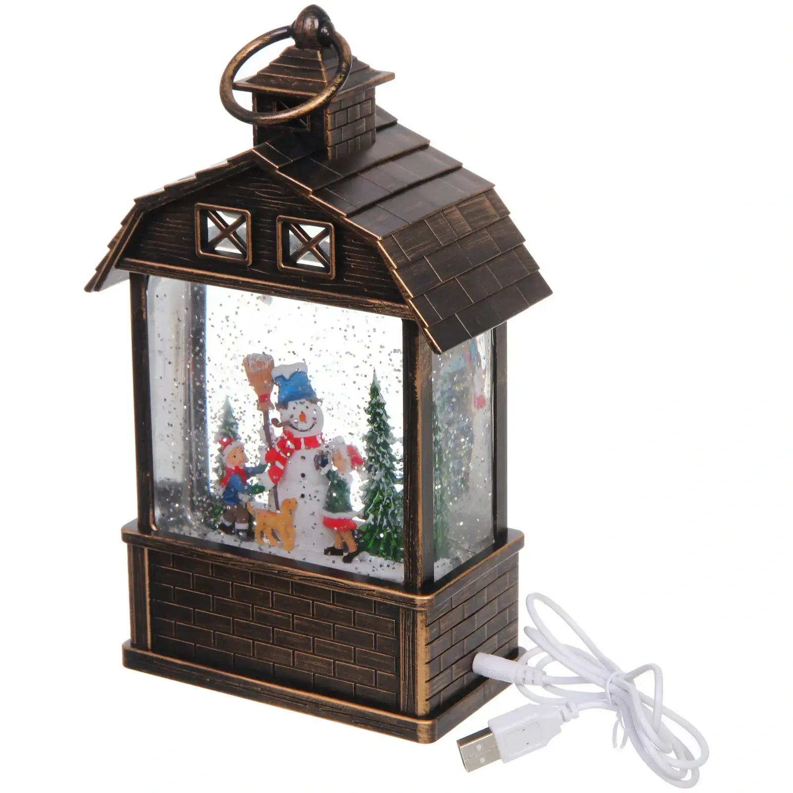 Светильник работает как от 3 батареек типа AA, так и от USB, что делает его удобным для использования в любом месте. Он идеально подходит для создания праздничного настроения в гостиной, спальне или на столе во время новогодних праздников. Внутри светильника расположены фигурки снеговика, детей и собаки, окруженные искусственными ёлками, что добавляет ему особый шарм.