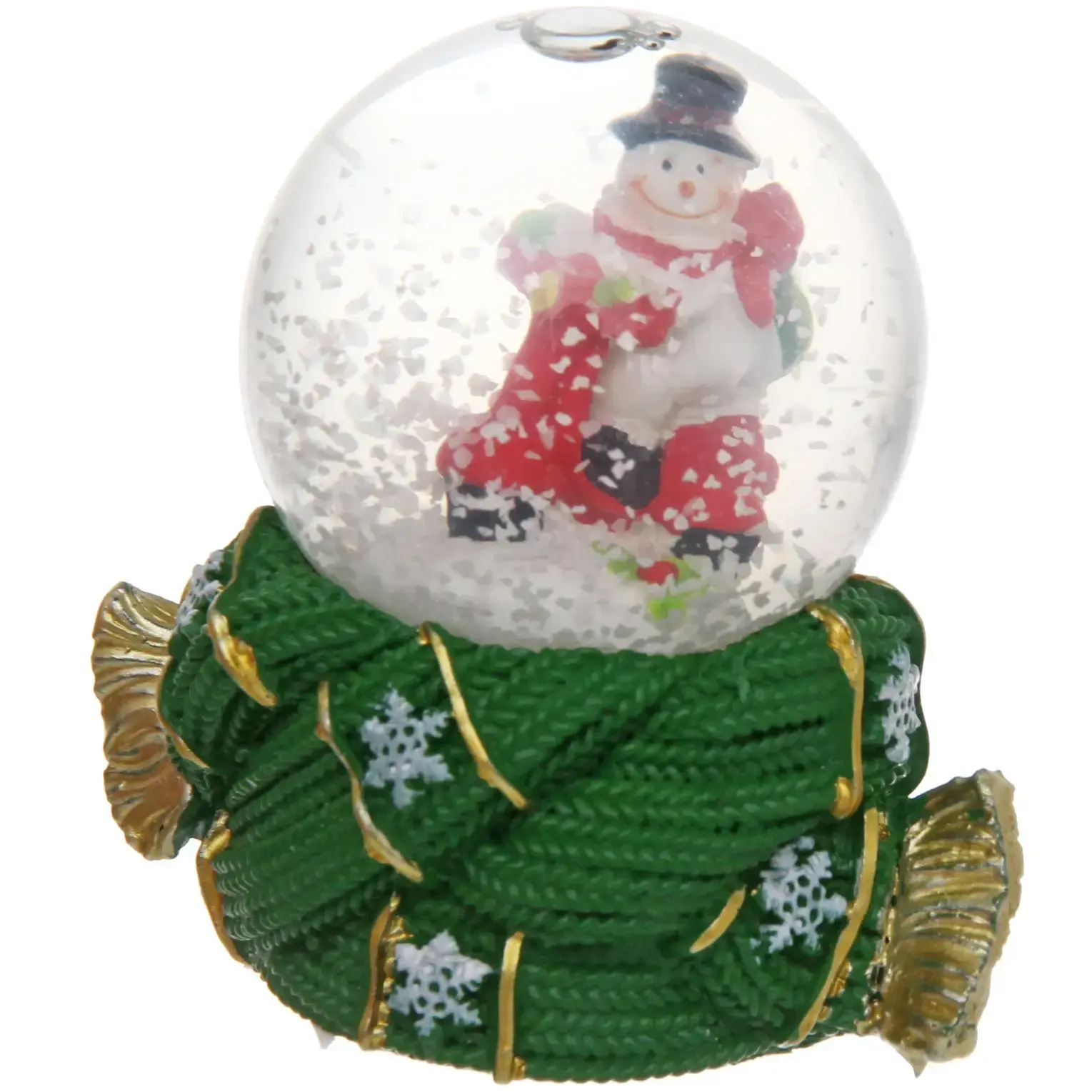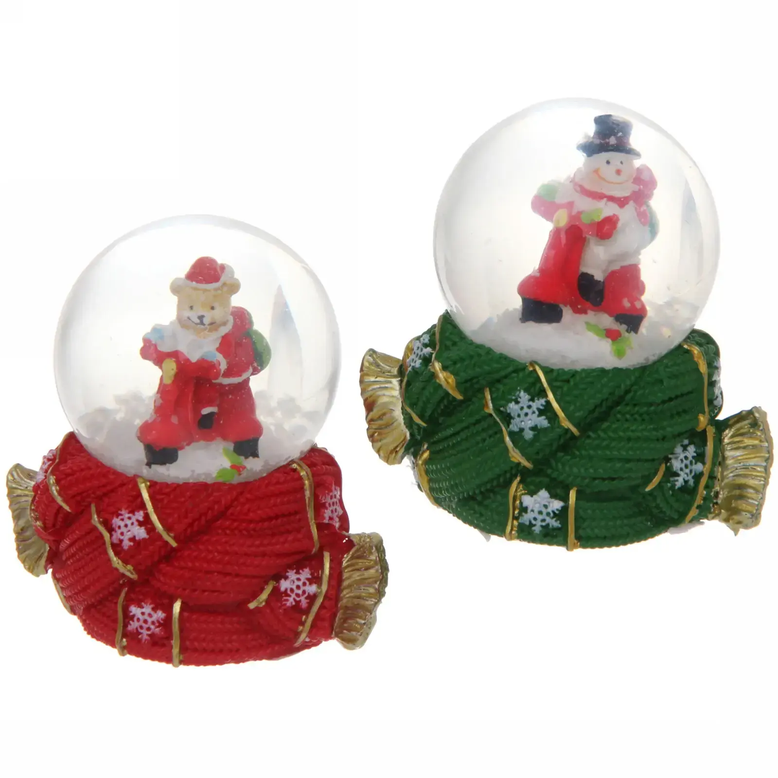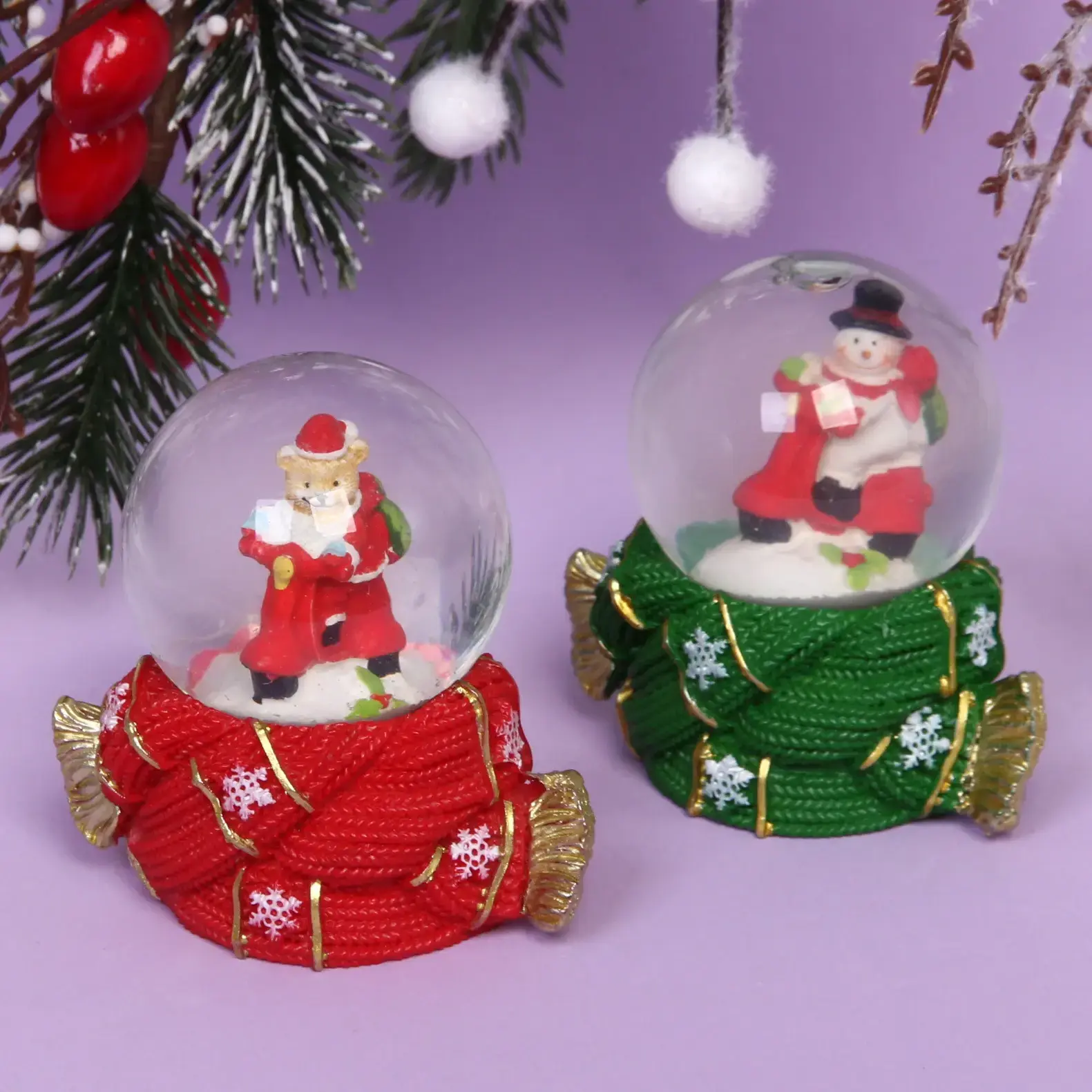 Размер снежного шара составляет 7х7 см, что делает его компактным и удобным для размещения. Основания шаров выполнены в различных цветах: красном и зеленом, украшены золотистыми элементами и белыми снежинками, что придает им особый шарм. Этот сувенир станет не только украшением, но и символом зимних праздников, который будет радовать вас каждый год.