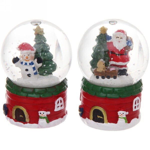 Размеры снежного шара составляют 6,5 см в высоту и 4,5 см в ширину, что делает его компактным и удобным для размещения. Яркие цвета и детализированные фигурки внутри шара добавляют ему привлекательности. Основание шара выполнено в красном цвете с элементами, имитирующими крышу, что делает его еще более интересным.