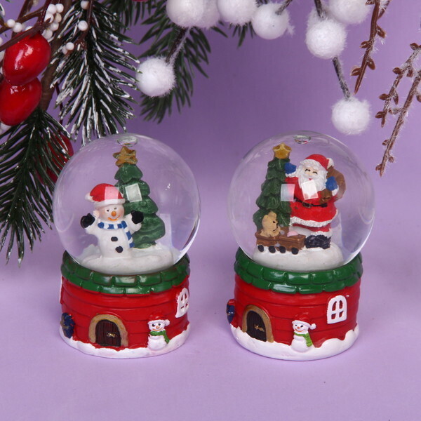 Снежный шар выполнен из качественного стекла и полистоуна, что обеспечивает его долговечность и надежность. Он идеально подходит для настольного использования, а также может стать ярким акцентом на полке или в витрине. Содержимое шара — это фигурки снеговика и Санта-Клауса, которые создают праздничное настроение и радуют глаз.