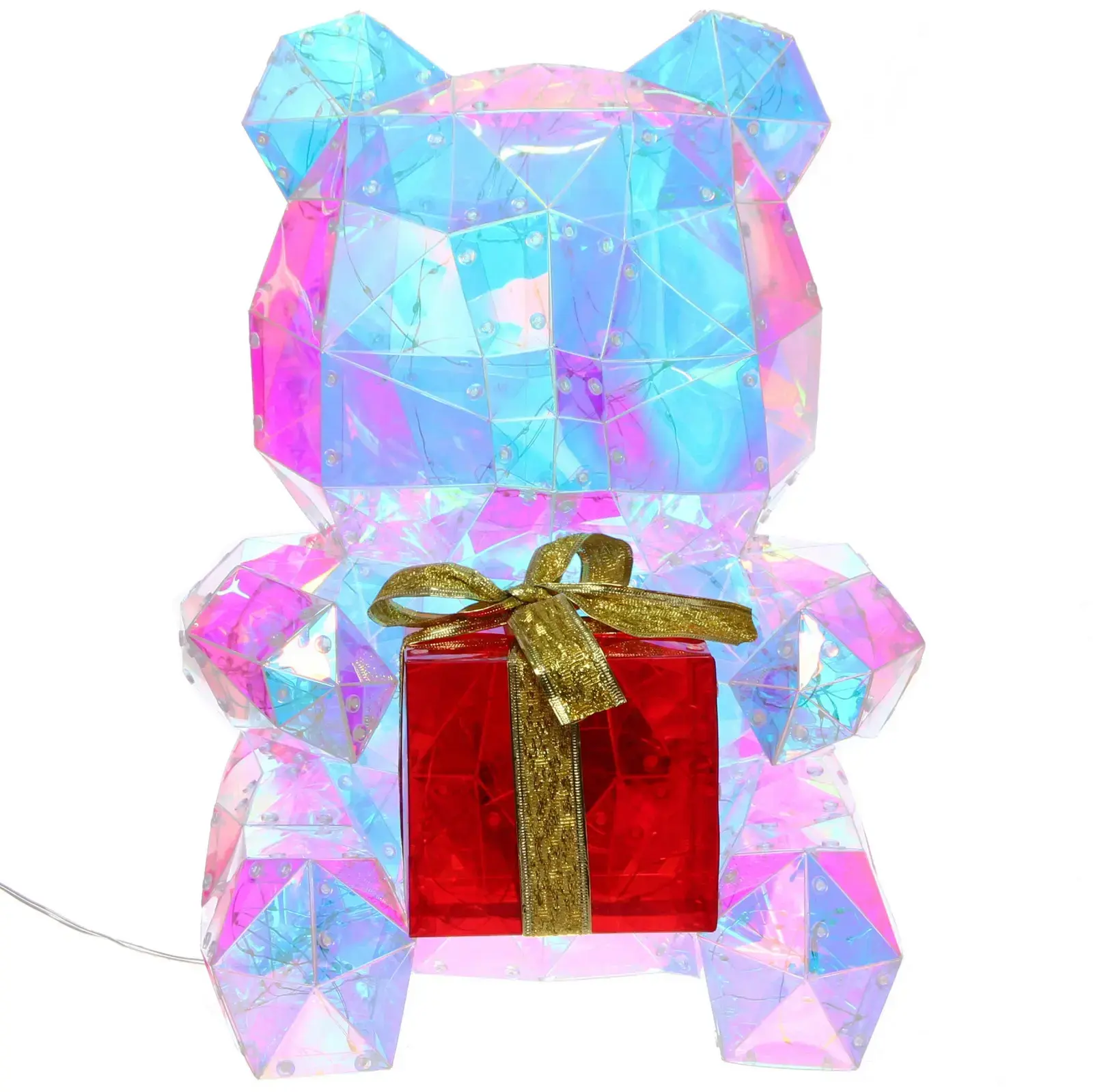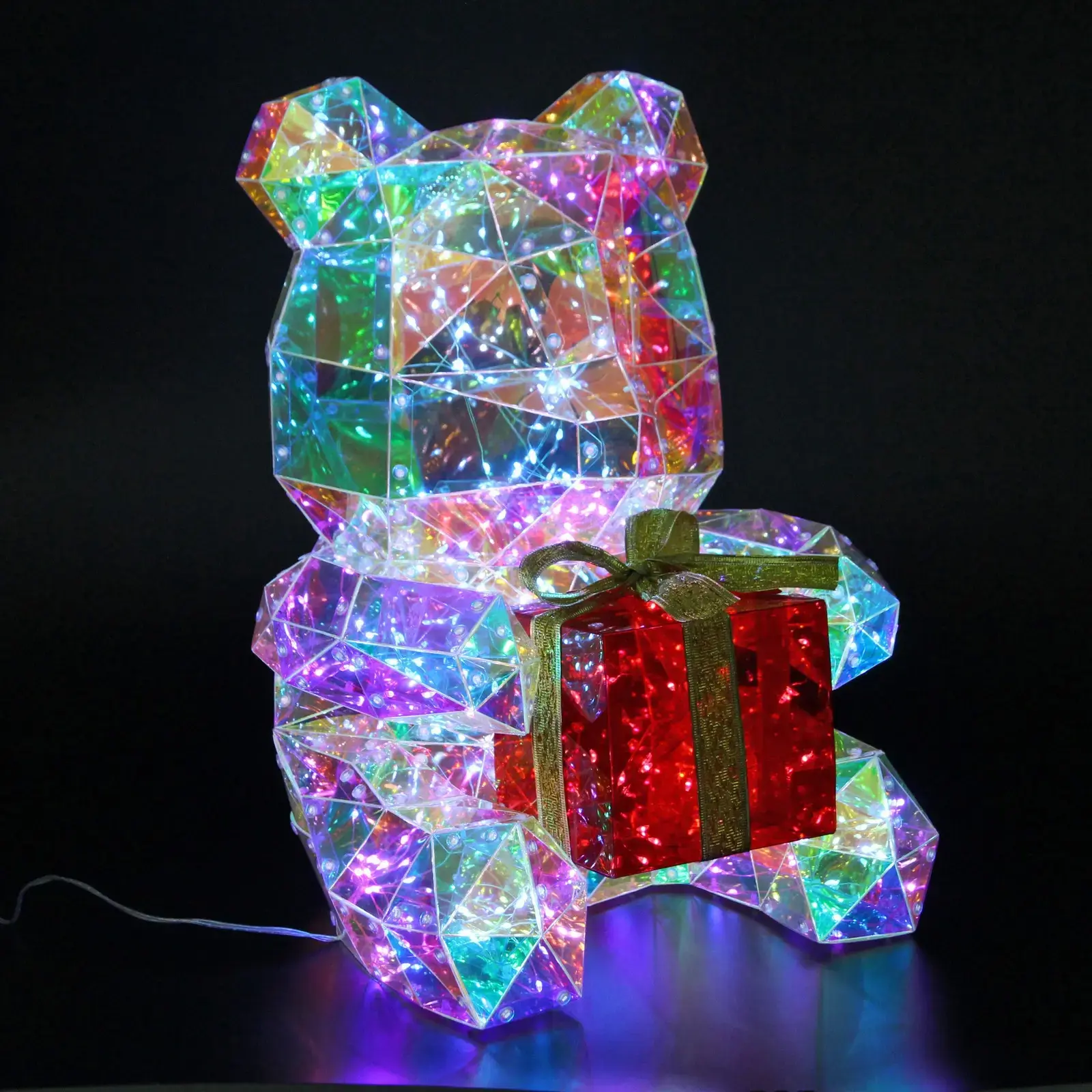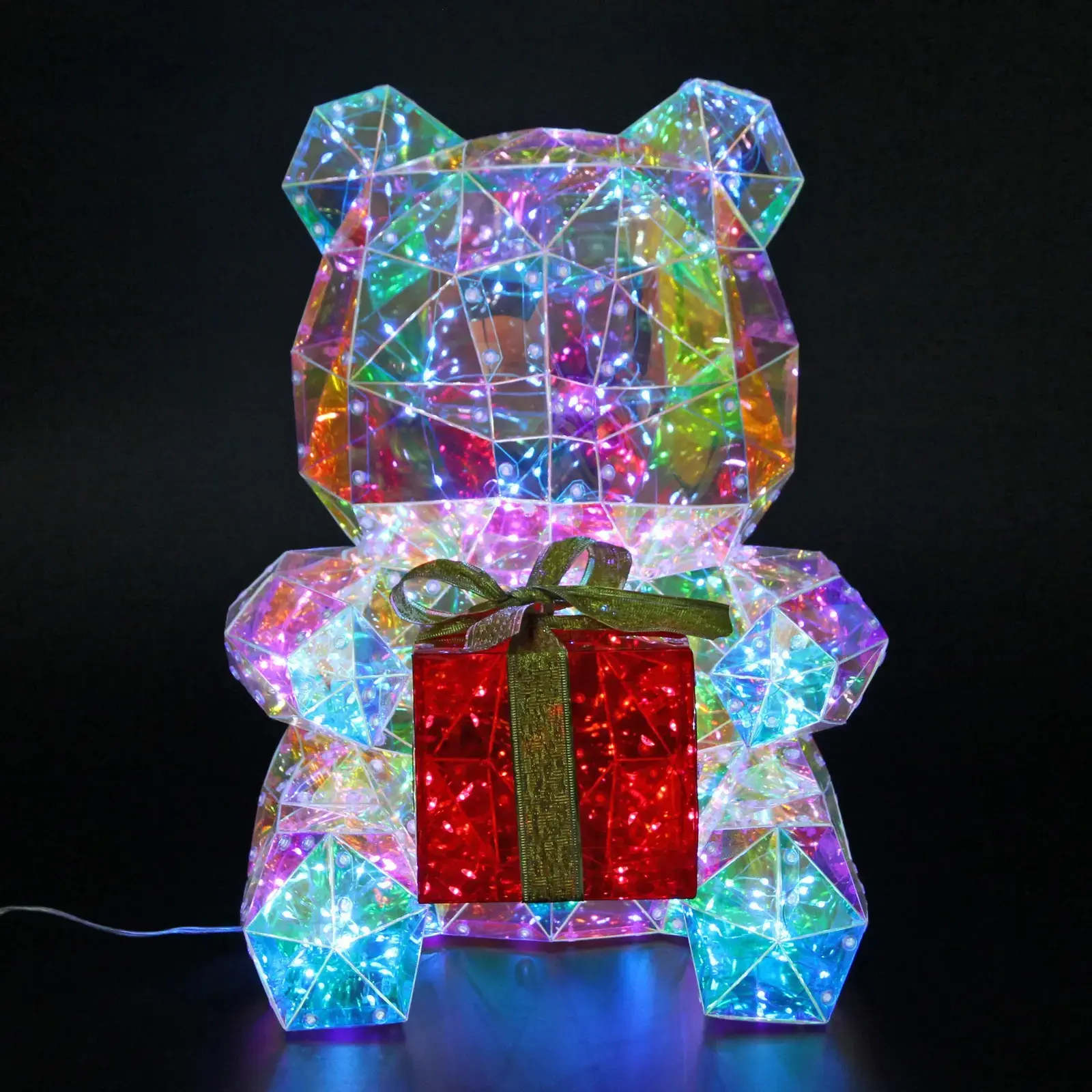 Фигура медведя с подарком станет центральным элементом новогоднего убранства — 300 разноцветных светодиодов создают мягкое мерцание, превращая обычный интерьер в сказочное пространство. Идеально подходит для украшения дома, витрин или праздничных мероприятий.