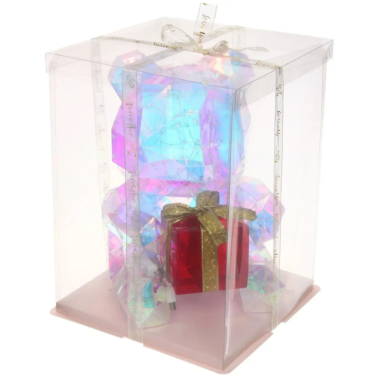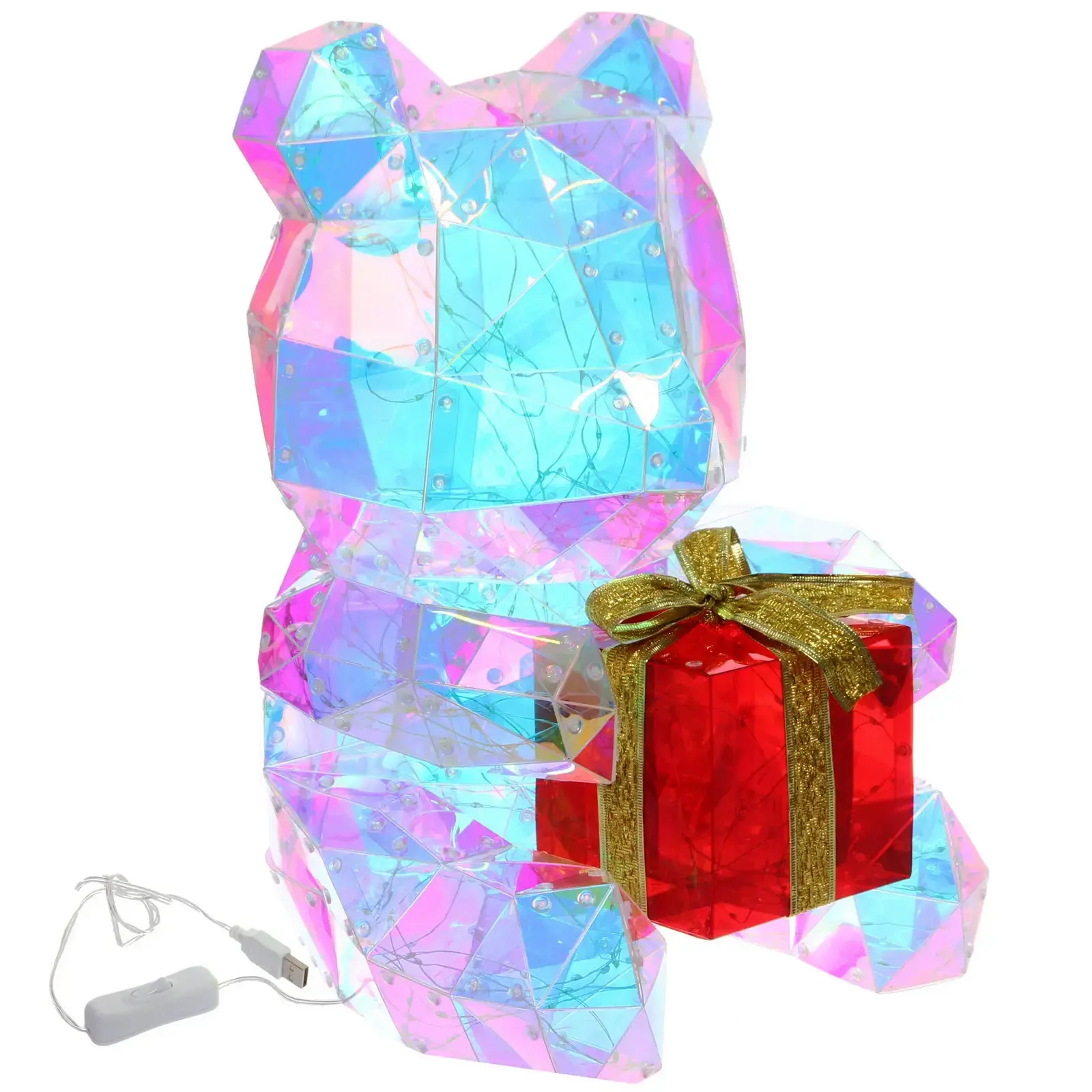 Светодиодная фигура «Мишка с подарком» 29*29,5*39 см, 300 LED, USB, белый, металл/пластик