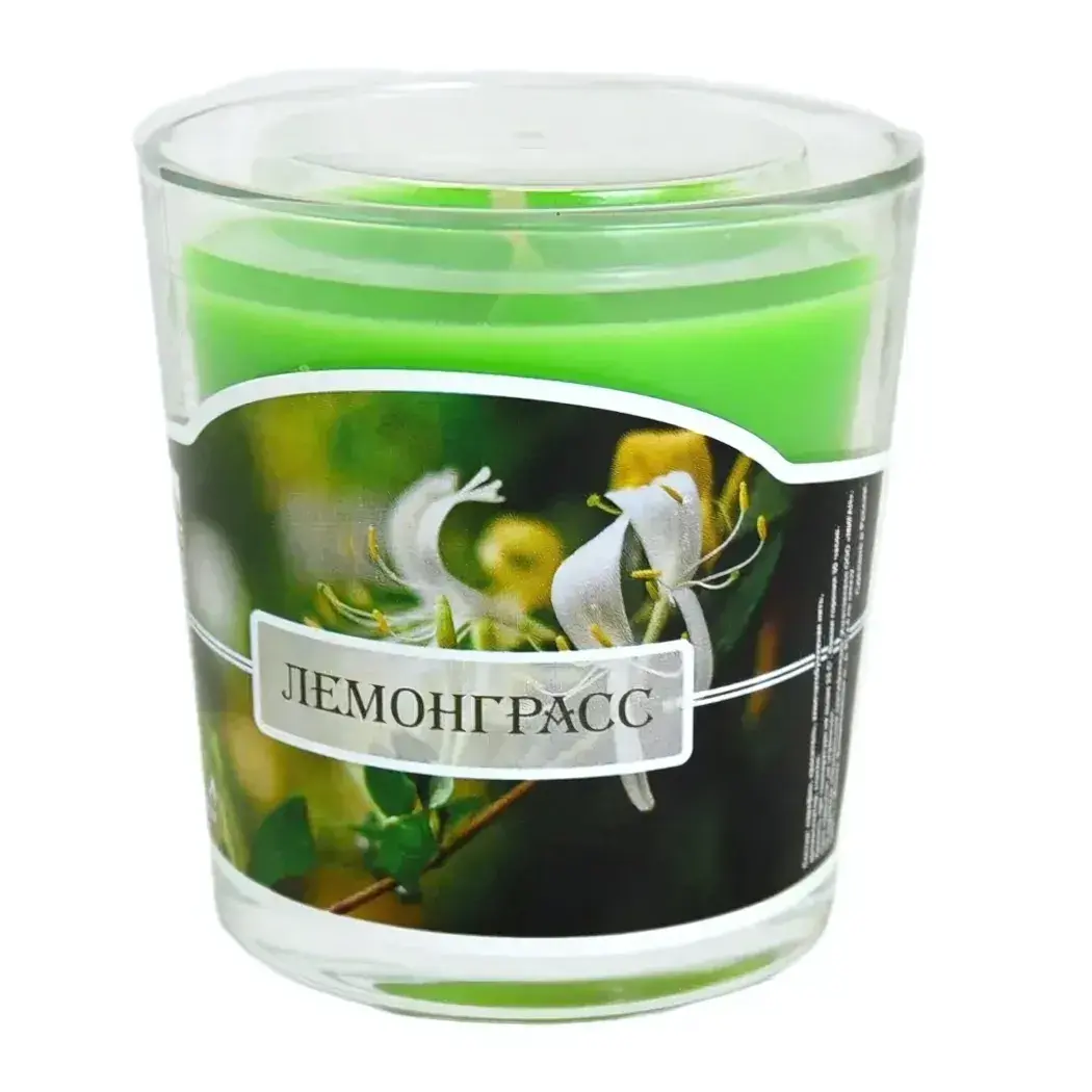 Свеча ароматическая в стакане Лемонграсс, долгое горение, 75г, цвет в ассортименте