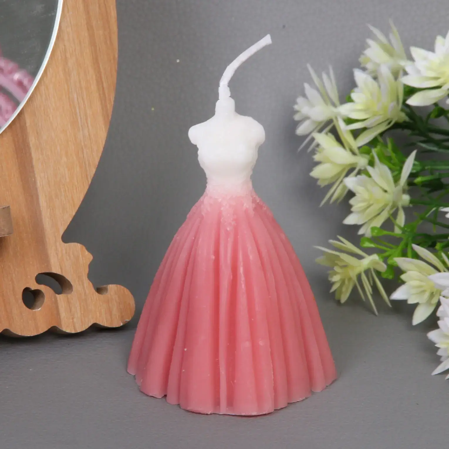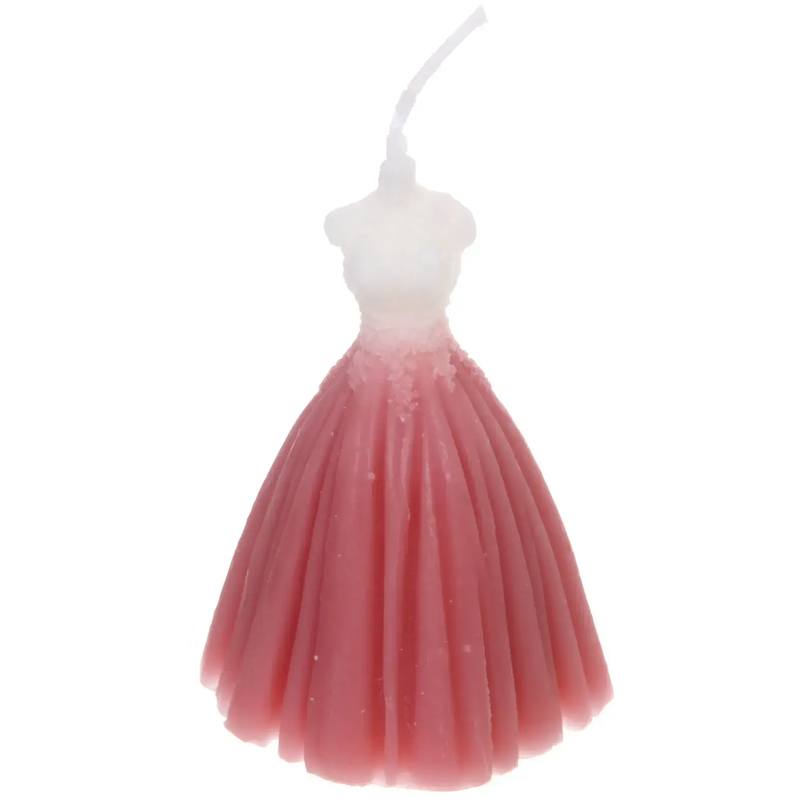 Эта оригинальная свеча в форме элегантного бального платья создаст утонченную атмосферу и станет ярким элементом декора. Контраст белого лифа и пышной розовой юбки с вертикальными складками привносит романтику и нежность в любое пространство.