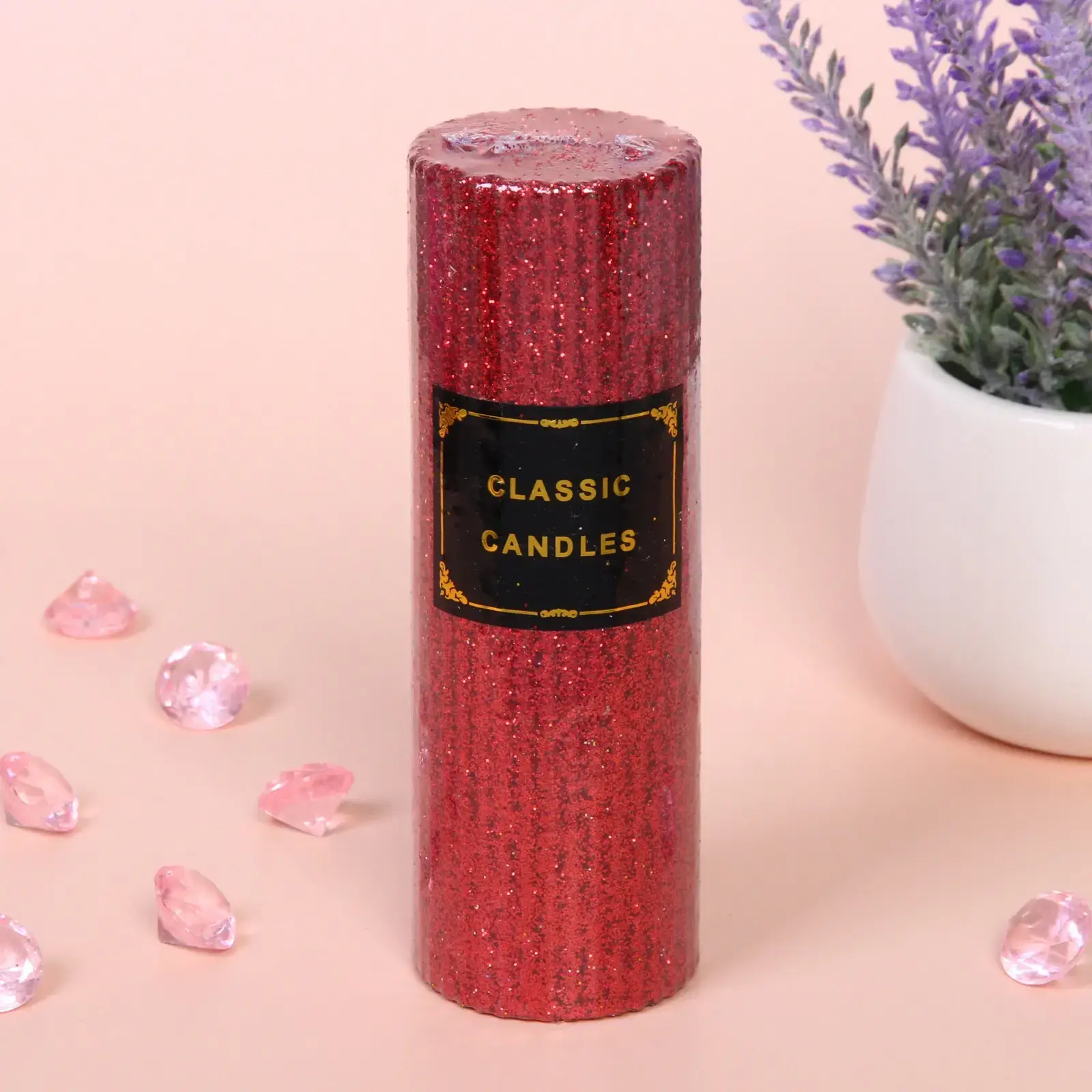 Свеча декоративная «Блестящий шик» 5х15 см, красная с блестками, золотые акценты
