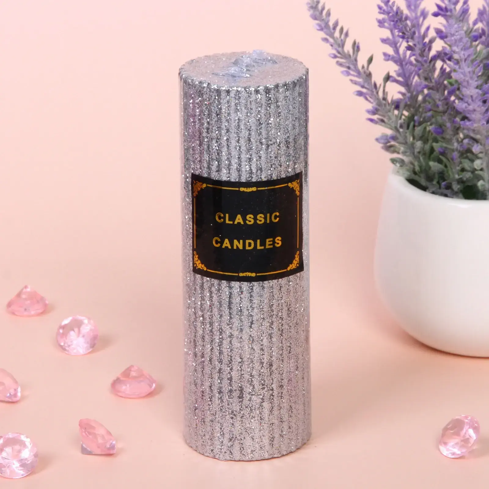 Декоративная свеча "Блестящий шик" станет идеальным акцентом для создания особенной атмосферы. Её серебристый цвет с тонкими блестками создает неповторимое мерцание, превращая любой вечер в настоящий праздник.