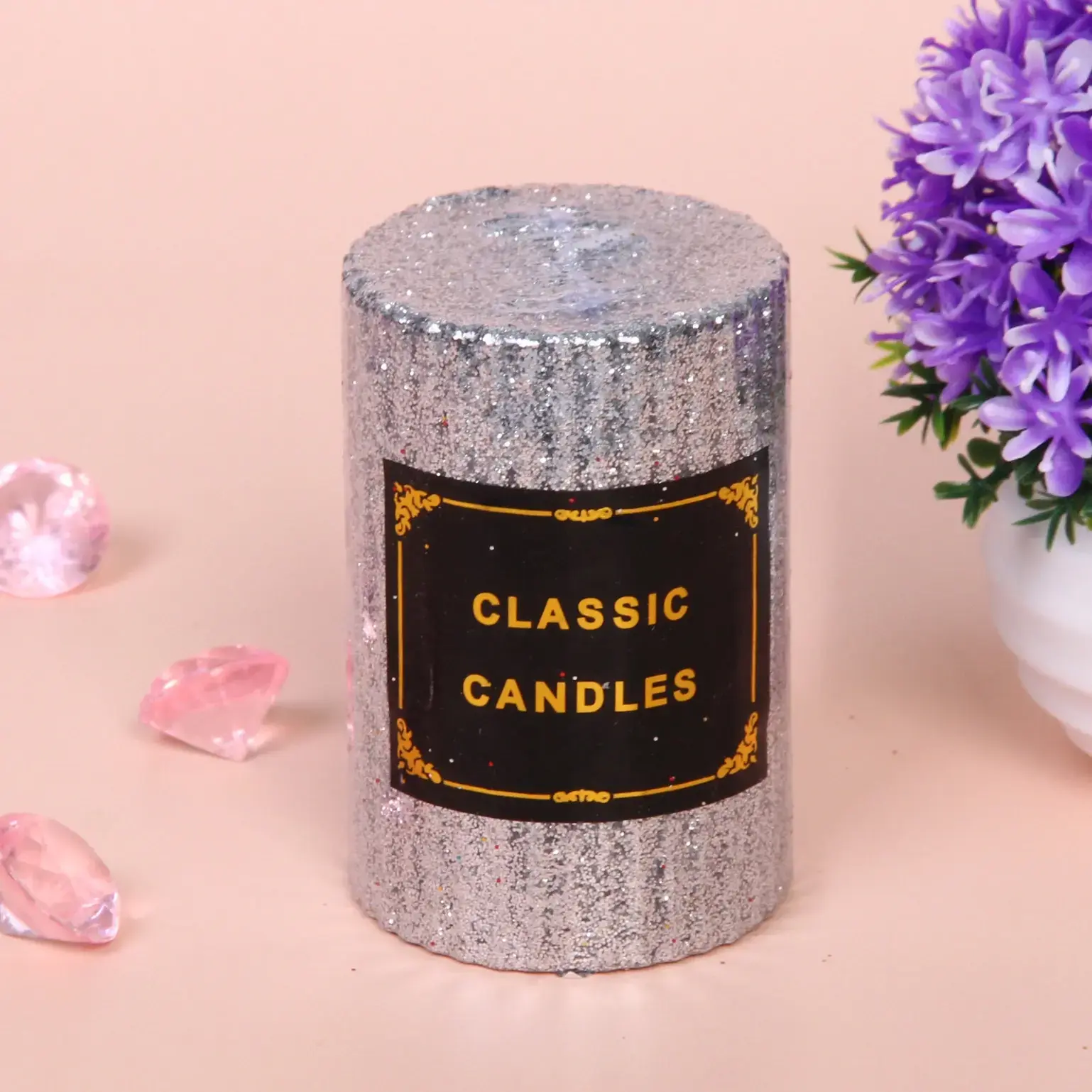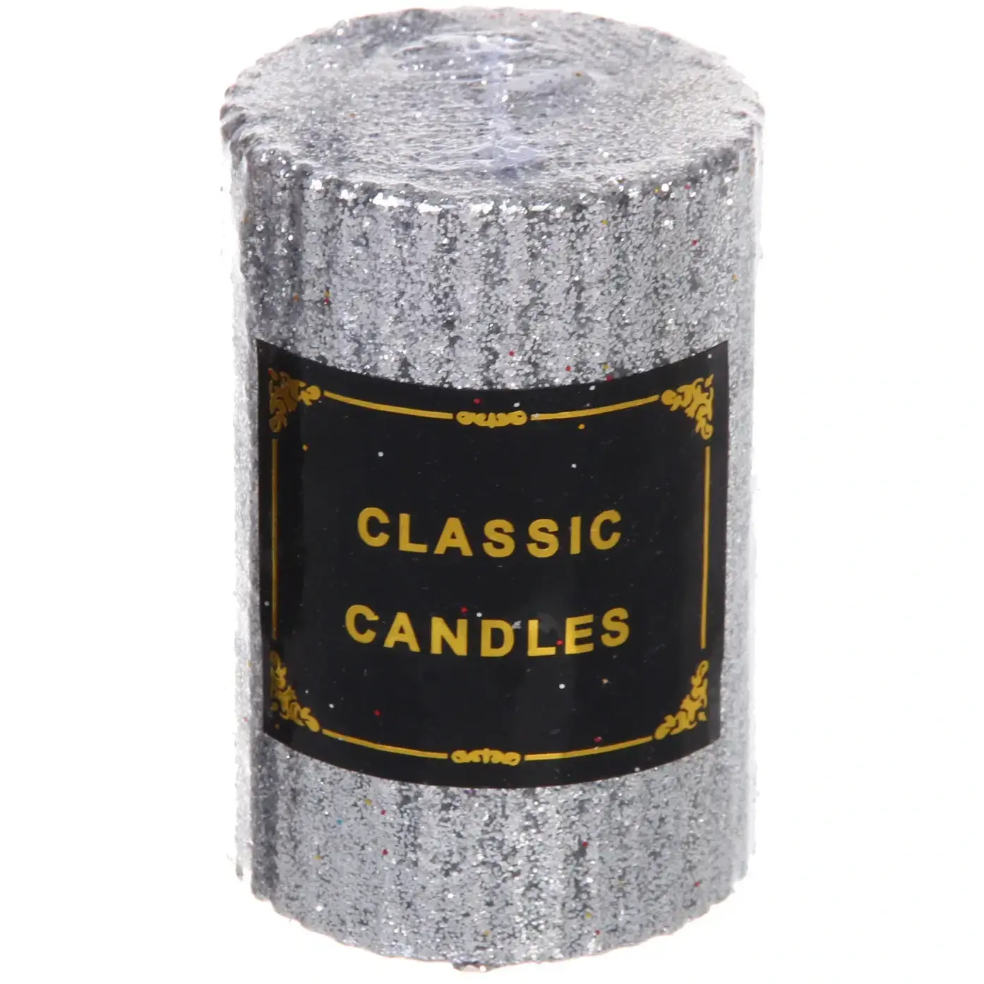 Свеча декоративная «Блестящий шик» 5×7,5 см, воск, серебристый с блёстками, для праздничного интерьера