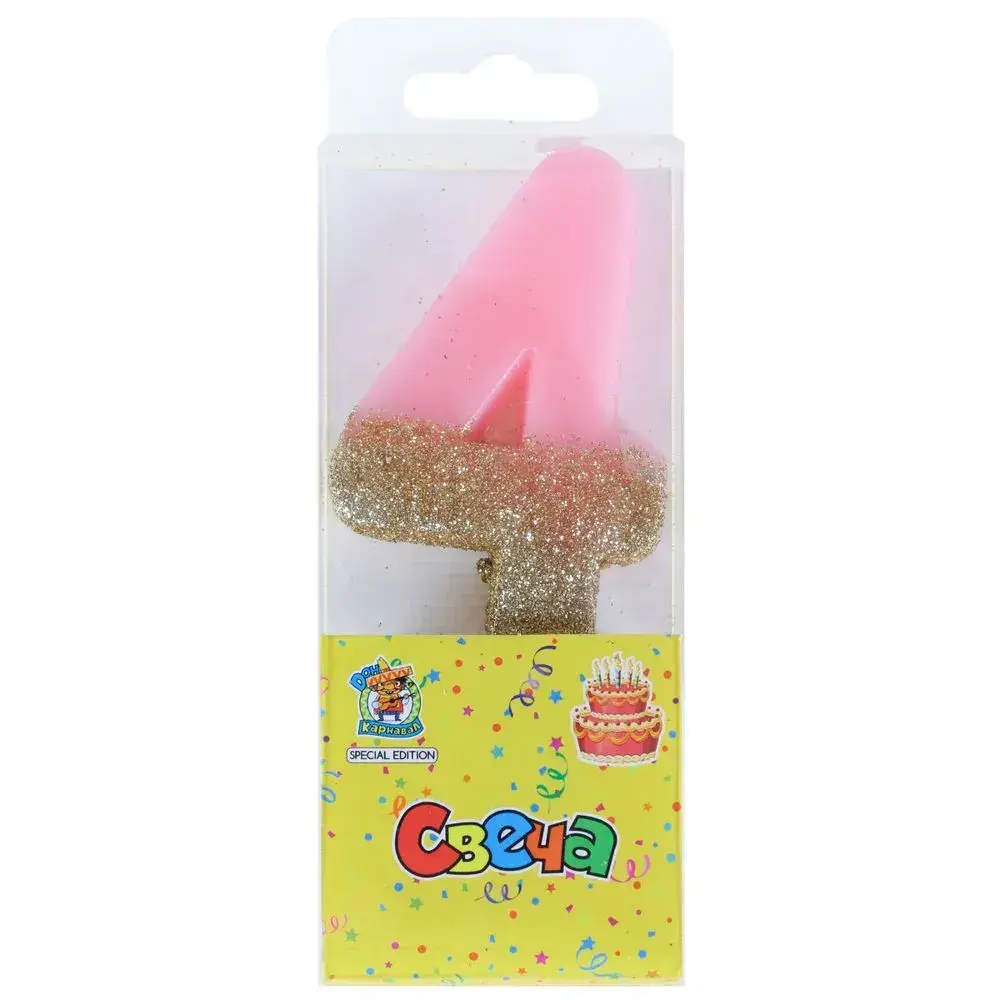 Свеча-цифра 4 с золотистым глиттером — идеальное украшение для торта, которое превратит обычный десерт в праздничный шедевр. Розовый оттенок и мерцающее покрытие создают атмосферу роскоши, а продуманная конструкция обеспечивает безопасное использование.