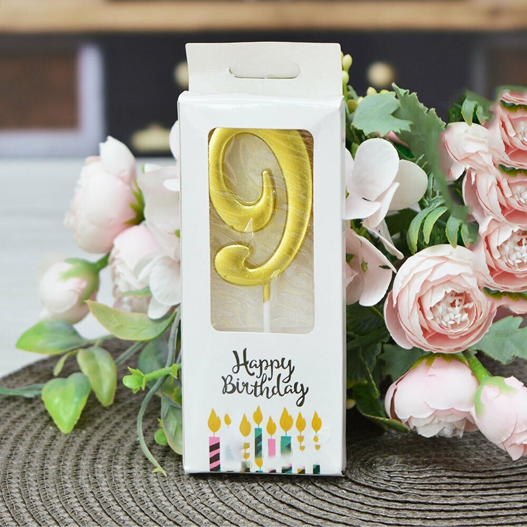 Свеча для торта цифра "9" золото, высота 10см, безопасный парафин