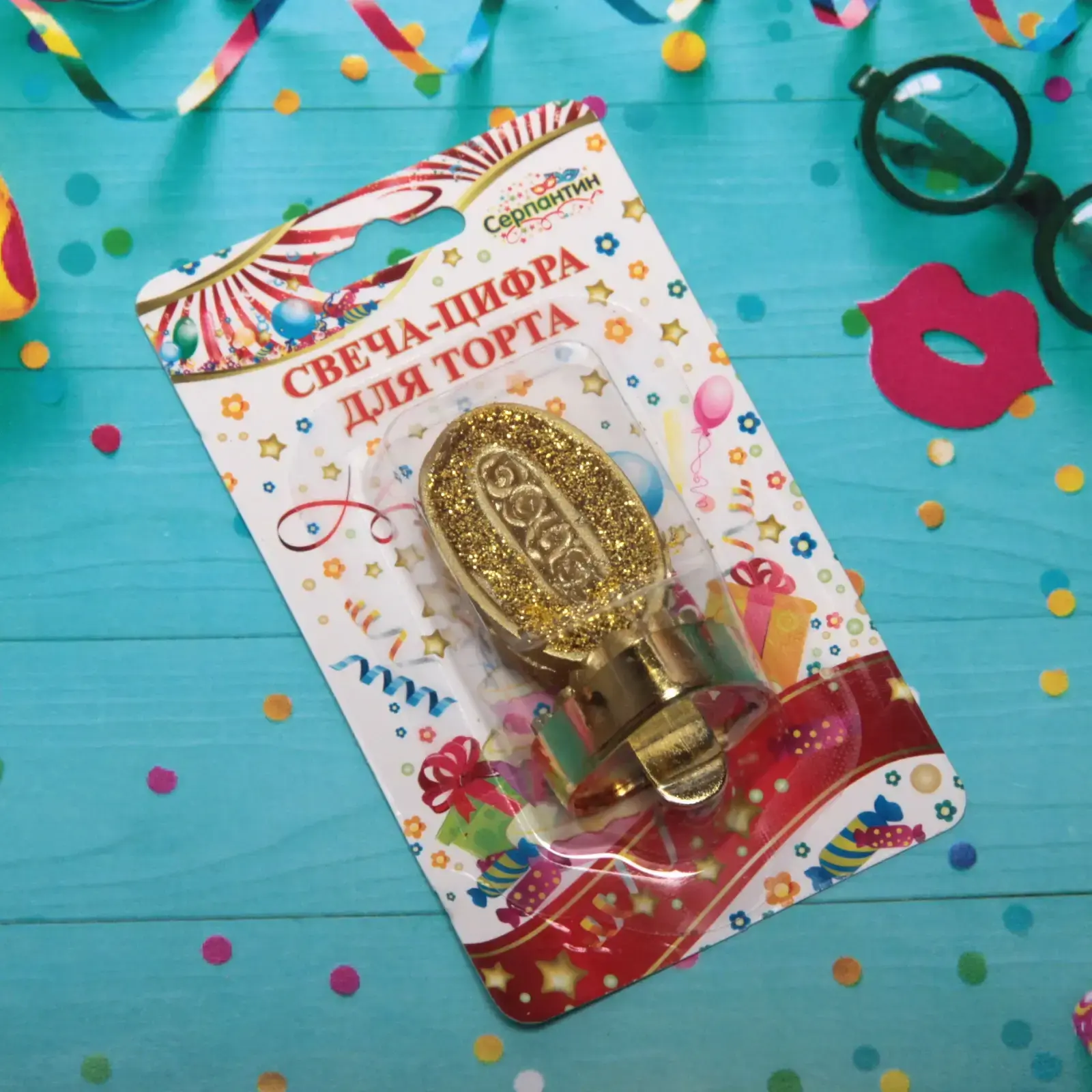 Свеча имеет овальную форму и выполнена в золотом цвете с блестками. Она поставляется с пластиковой подставкой для удобного крепления к торту. Размер свечи составляет 5 см, что делает ее идеальной для большинства тортов. Праздничный дизайн упаковки с элементами конфетти и яркими цветами создает дополнительное настроение. Сделайте ваш праздник незабываемым с этой великолепной свечой-цифрой!