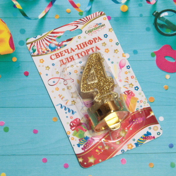 Свеча-цифра для торта '4', золото, 5см, блестящая/праздничная