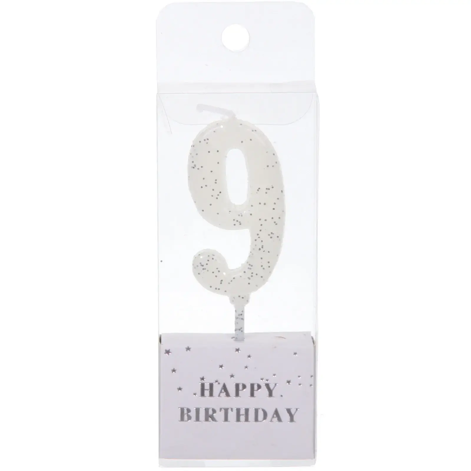 Создайте незабываемую атмосферу на вашем празднике с помощью этой великолепной свечи для торта в форме цифры «9». Она станет ярким акцентом на любом торте и добавит нотку веселья в ваше торжество. Белый цвет с серебряными блестками придаёт свечке элегантный и праздничный вид, который обязательно понравится всем вашим гостям.