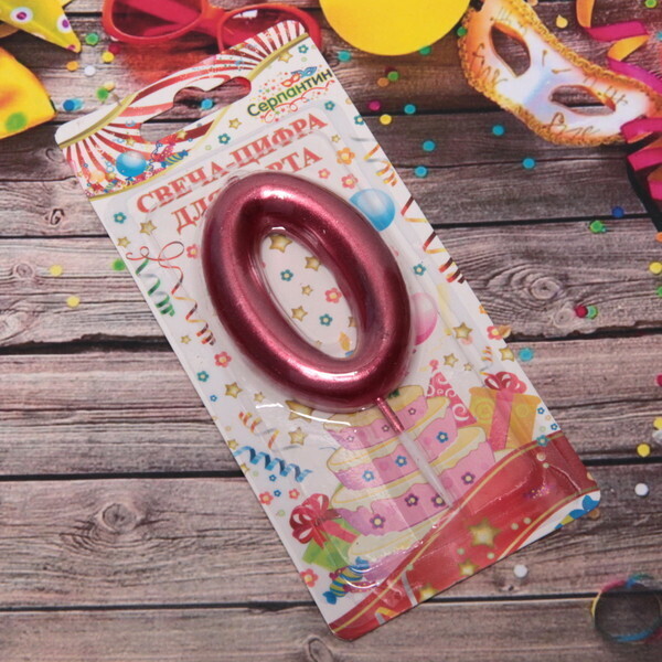 Праздничная свеча в форме цифры '0' станет ярким акцентом на вашем праздничном торте. Её глянцевая поверхность с металлическим отливом создаст особую атмосферу торжества.