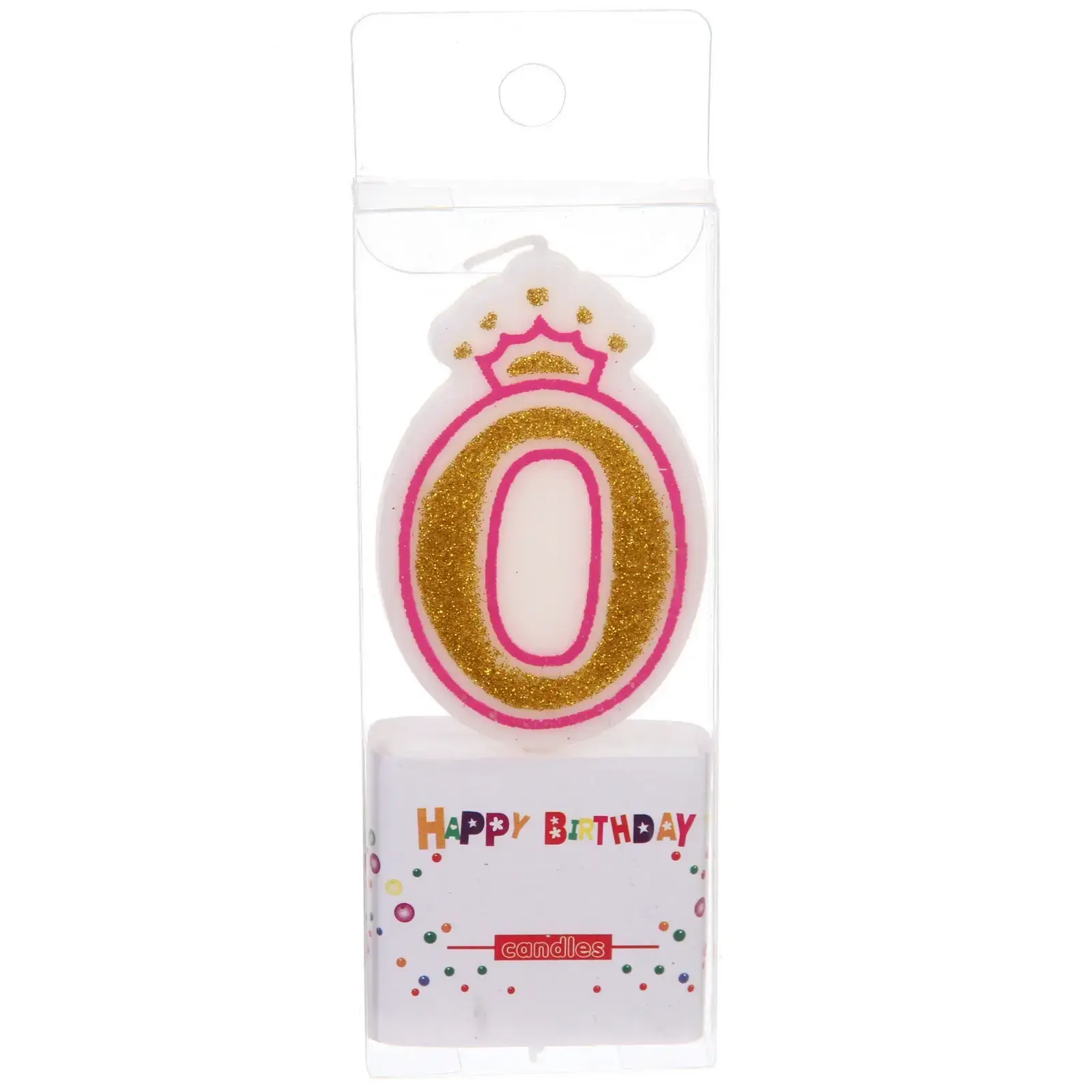 Почему стоит выбрать именно эту свечу? Во-первых, её уникальный дизайн с короной и блестками привлечет внимание гостей и создаст праздничное настроение. Во-вторых, она изготовлена из качественного парафина, что обеспечивает долгую горимость и красивое пламя. В-третьих, прозрачная упаковка с надписью 'HAPPY BIRTHDAY' и яркими цветными элементами добавляет дополнительный шарм и делает её отличным подарком.