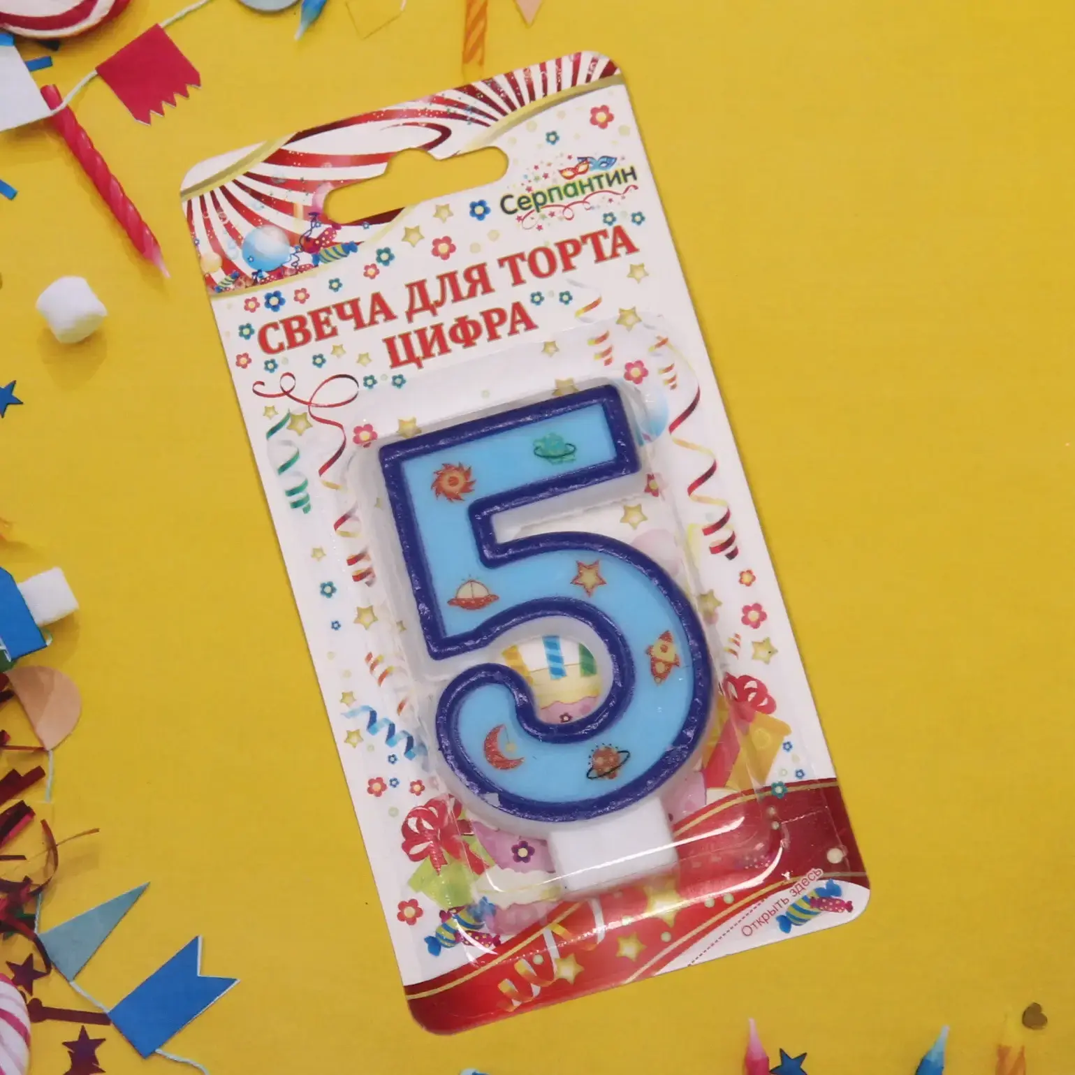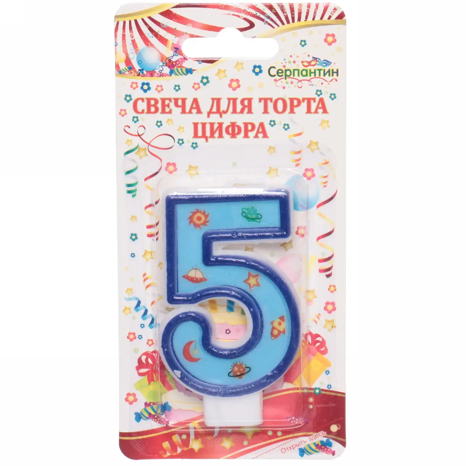 Свеча для торта в форме цифры '5' — это идеальный способ добавить яркие эмоции и оригинальность к вашему торжеству. С голубым цветом и космическим декором, включающим звезды и планеты, она станет настоящим украшением любого праздничного стола. Порадуйте своих близких и сделайте их день особенным!