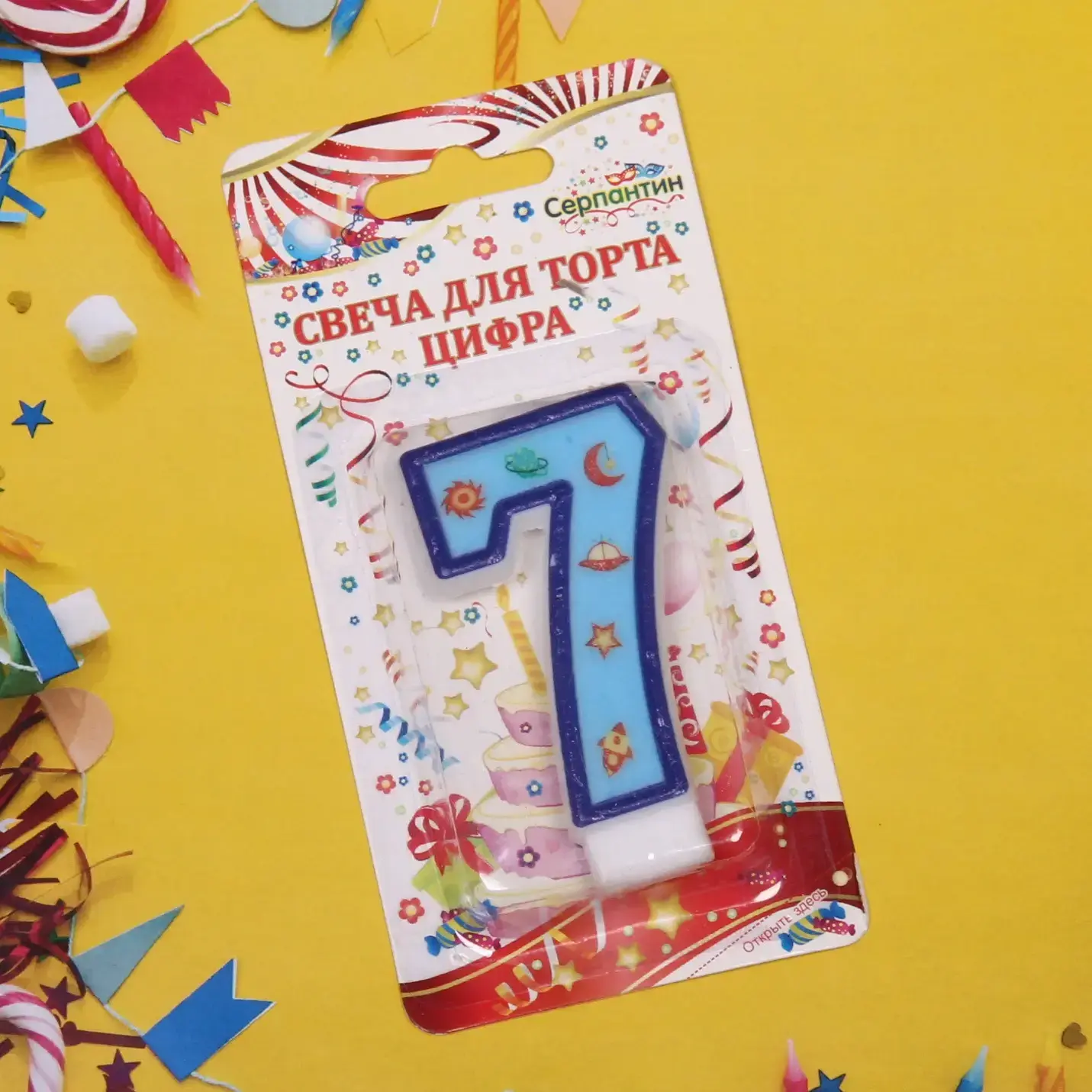 Свеча для торта в форме цифры '7' — это идеальный способ добавить яркие акценты к вашему торжеству. Она выполнена в голубом цвете и украшена красочными рисунками солнца, луны и звезд, что делает её отличным выбором для детских праздников. Эта свеча не только украсит торт, но и создаст атмосферу волшебства и радости.