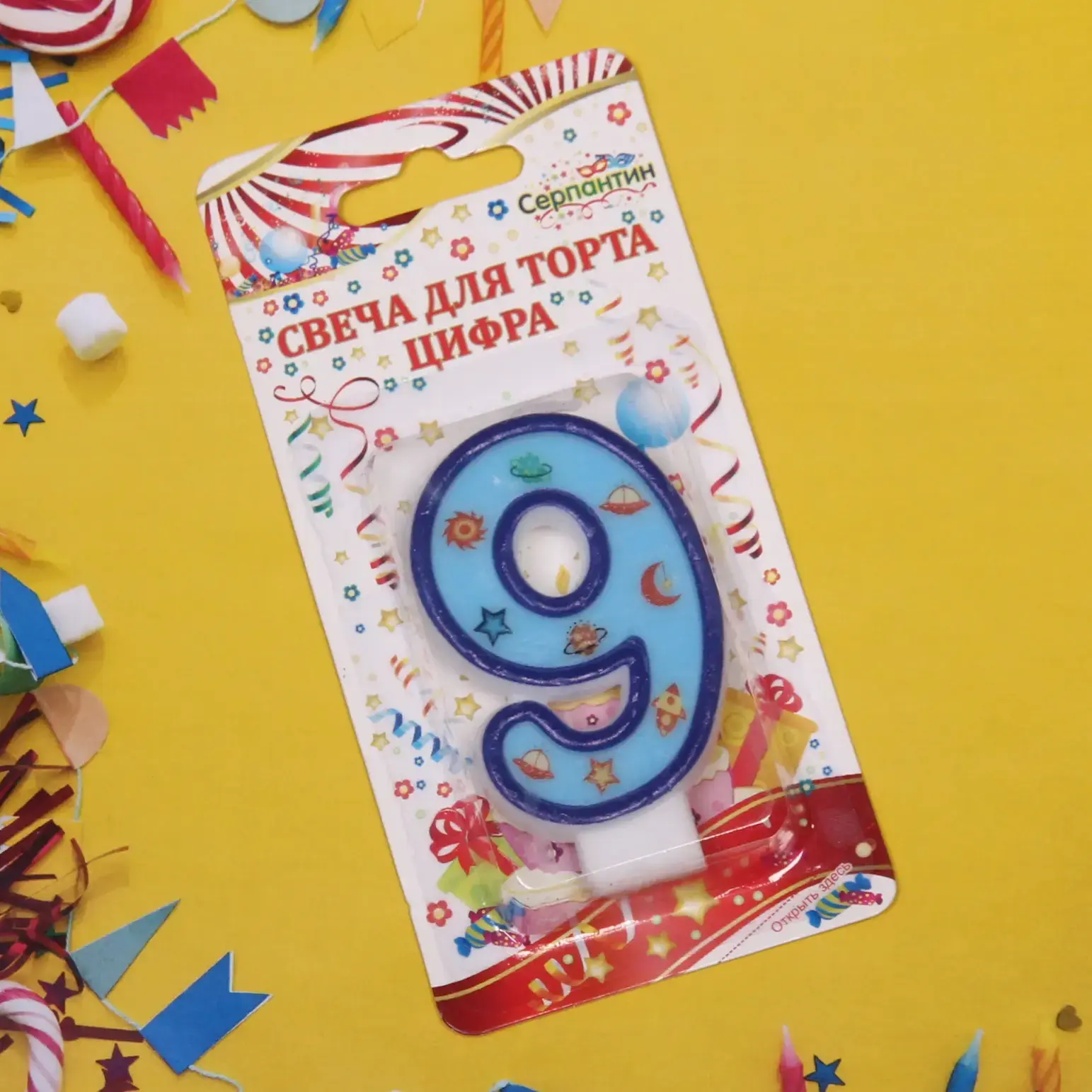 Свеча для торта в форме цифры 9 — это не просто элемент декора, а настоящий акцент вашего праздника. Яркий голубой цвет и космический дизайн с изображениями звезд, планет и луны создадут атмосферу волшебства и радости. Эта свеча станет отличным дополнением к любому торту, придавая ему уникальность и оригинальность.