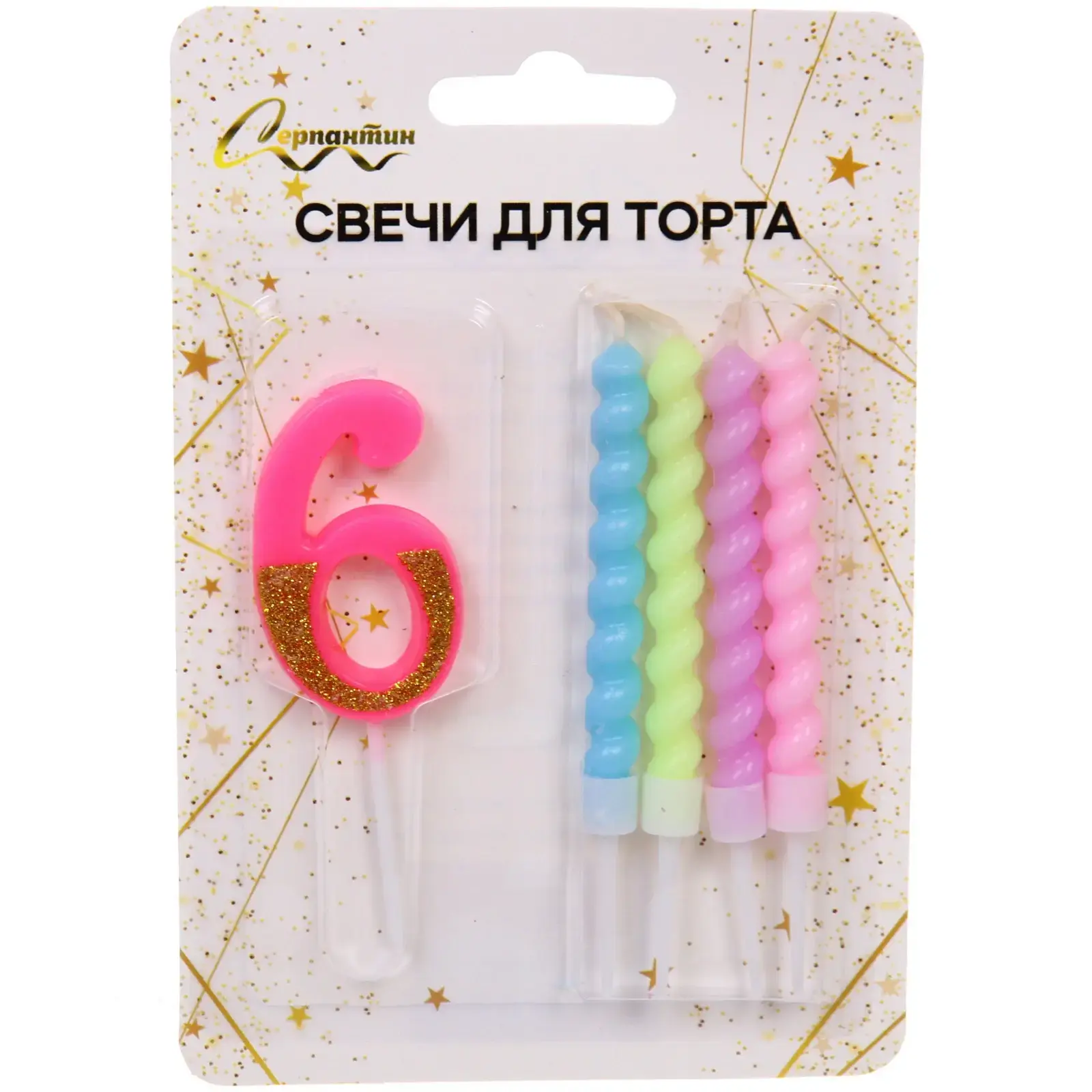 Изысканная свеча для торта в форме цифры 6 с блестящим элементом добавит праздничного шарма любому событию. В комплекте также четыре стандартные цветные свечи — голубая, зелёная, розовая и фиолетовая, каждая с удобной пластиковой основой для стабильной установки на торте. Такой набор идеально подходит для детских дней рождения и семейных праздников, где важны и атмосфера, и легкость декорирования.