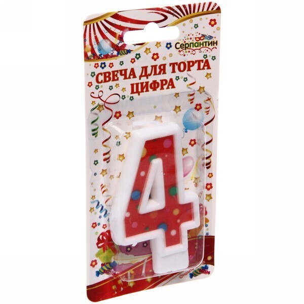 Свеча для торта 'Пузырик' в виде цифры 4 станет идеальным украшением праздничного десерта. Её насыщенный красный цвет с веселыми разноцветными точками создаст атмосферу радости и беззаботности.