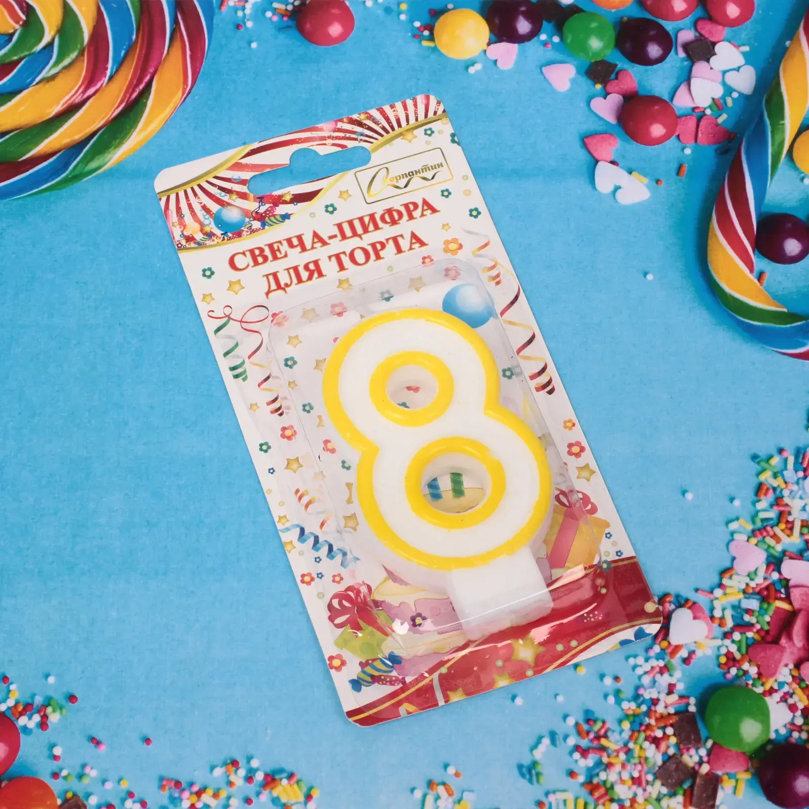 Устройте по-настоящему тёплый праздник с помощью свечи-цифры «Радость» в форме 8. Белоснежная основа с солнечно-жёлтой окантовкой создаёт ощущение веселья, подходит для оформления детского и семейного торта. Праздничная упаковка с яркими шариками и конфетти мгновенно задаёт атмосферу радости и предвкушения.