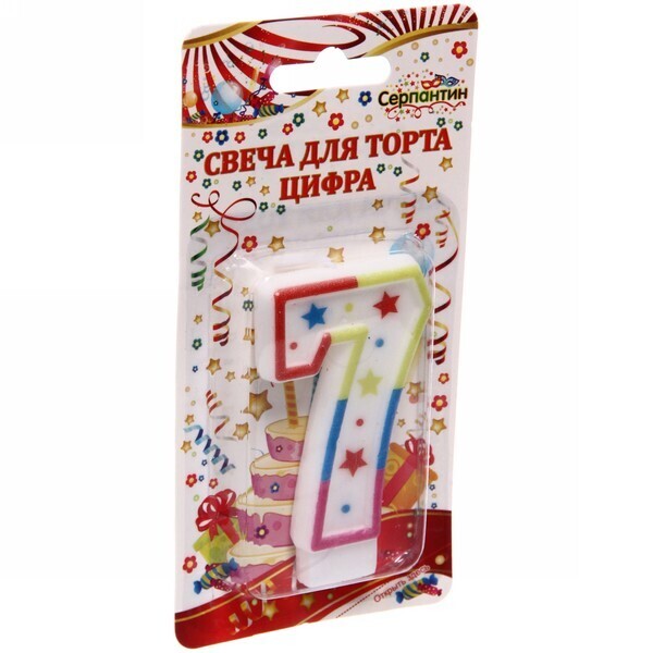 Размер свечи составляет 6,7 см, что делает её подходящей для большинства тортов. Упаковка оформлена в ярком праздничном стиле с элементами конфетти и изображениями тортов, что делает её отличным подарком или дополнением к вашему празднику. Не упустите возможность сделать ваш праздник ещё более запоминающимся с помощью этой замечательной свечи!