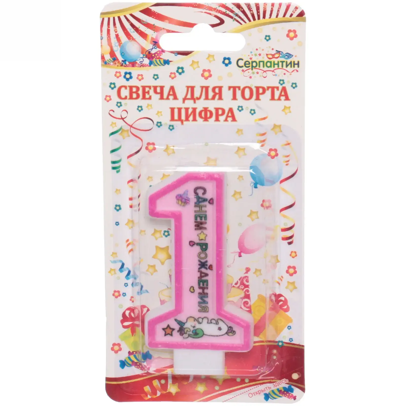 Праздничная свеча для торта в форме цифры '1'