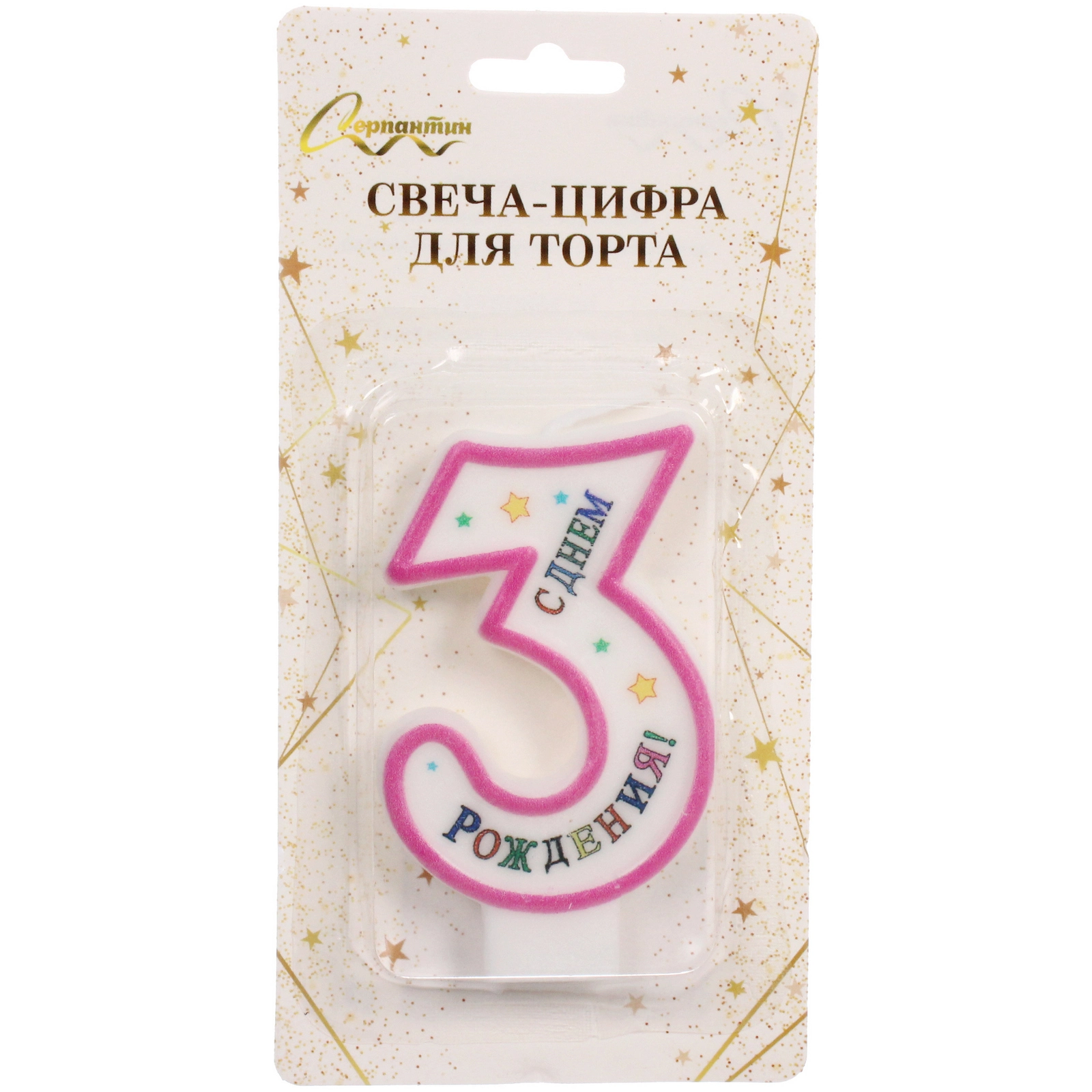 Размер свечи составляет 6 см, что делает её идеальной для большинства тортов. Розовый цвет с белыми и цветными элементами декора добавляет яркости и радости. Свеча упакована в прозрачный пластиковый контейнер, который защищает её от повреждений и позволяет видеть саму свечу. Не упустите возможность сделать ваш праздник ещё более особенным с этой замечательной свечой!