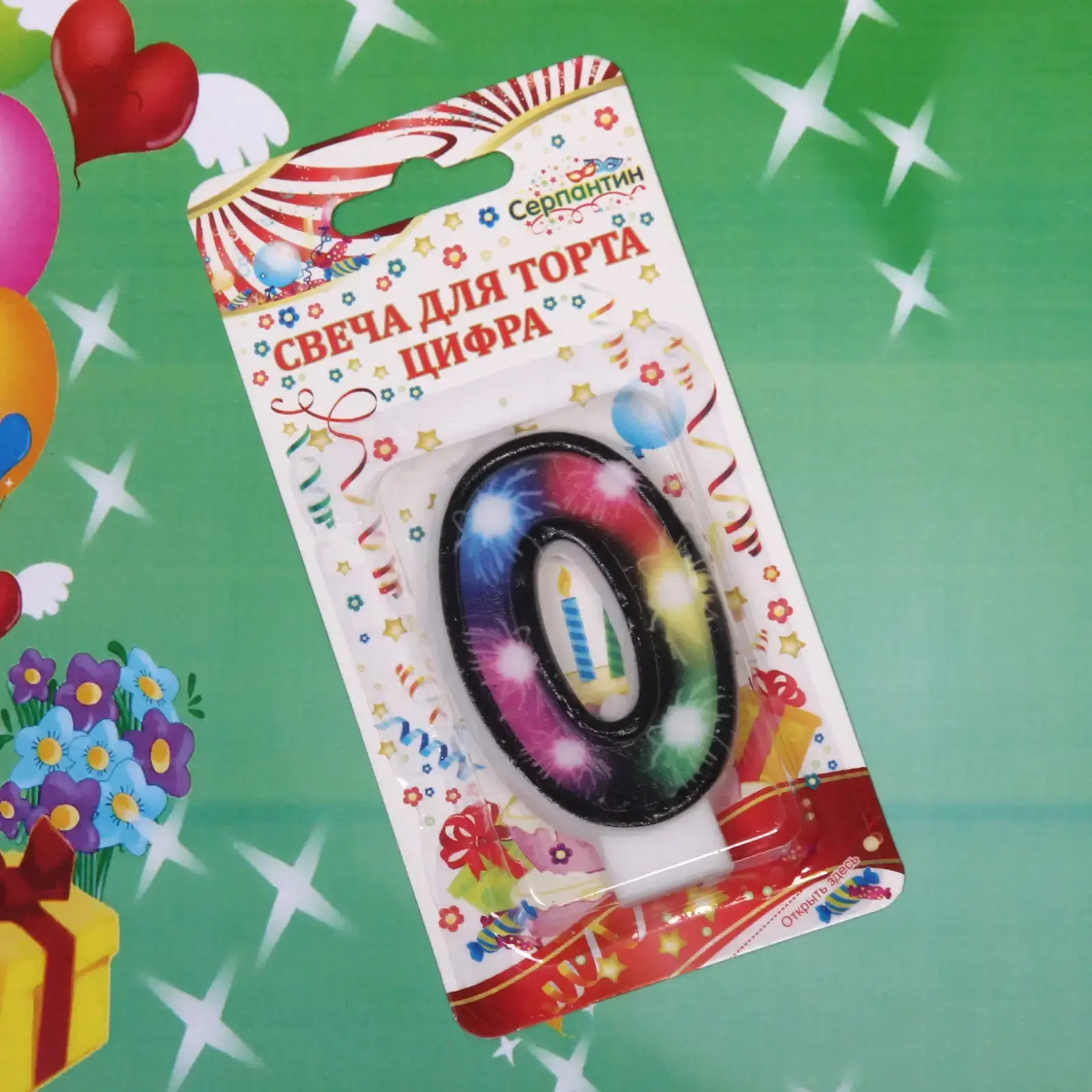 Свеча имеет размер 6 см и оформлена в форме цифры '0'. Она упакована в яркую пластиковую упаковку, что делает ее отличным подарком или дополнением к вашему праздничному столу. Не забывайте о мерах предосторожности: не оставляйте зажженную свечу без присмотра и используйте ее только под контролем взрослых.