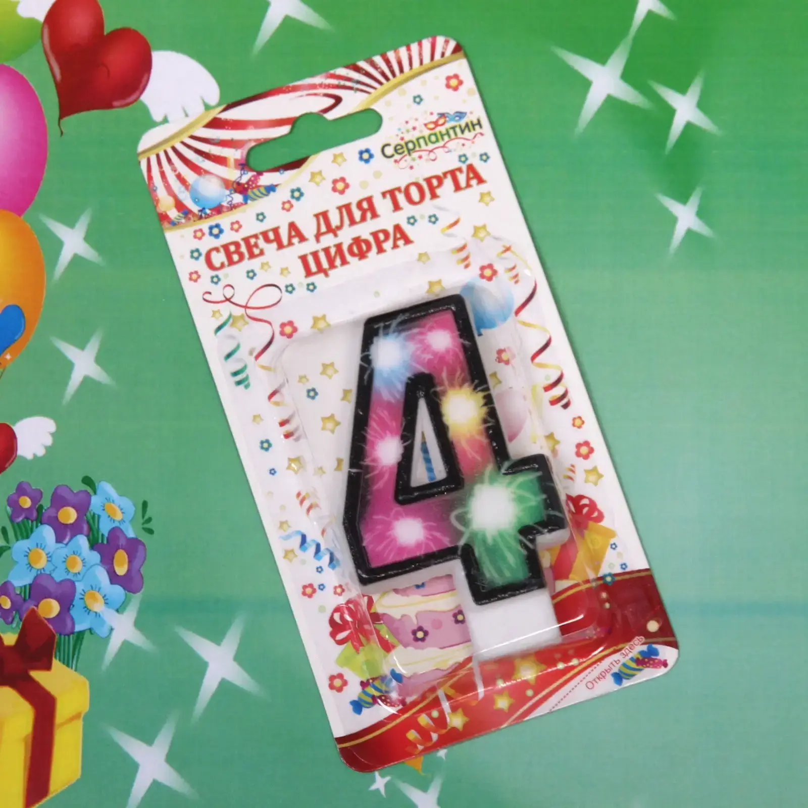 Свеча для торта «4» 6 см, цифровая, парафиновая, праздничный декор с фейерверками