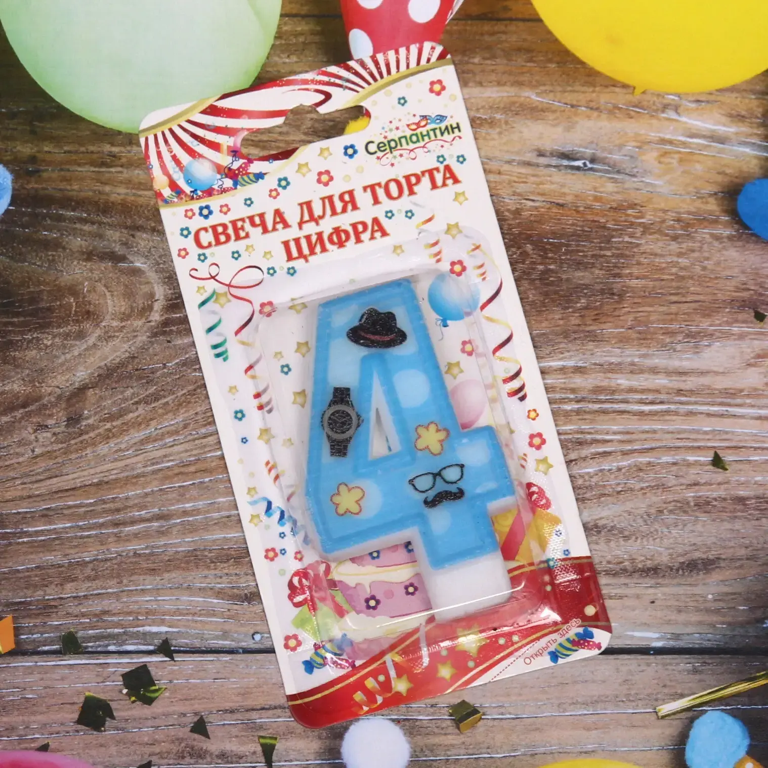 Свеча для торта в форме цифры «4» — это идеальный способ добавить яркие акценты к вашему торжеству. Ярко-голубой цвет и оригинальный декор в виде шляпы, часов и усов создадут атмосферу веселья и радости. Эта свеча станет не только украшением, но и символом важного события, будь то день рождения или юбилей.