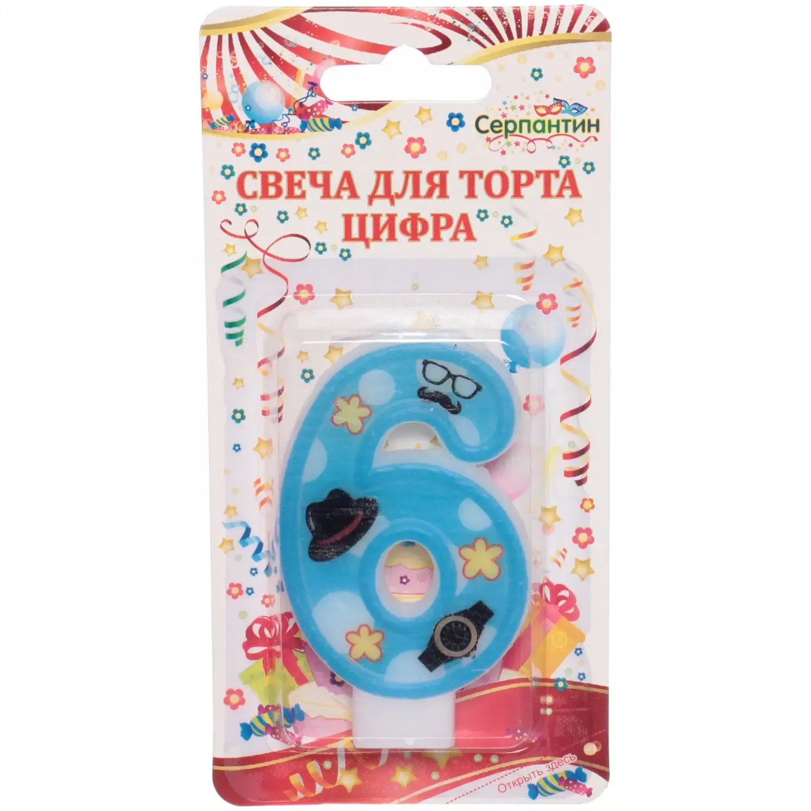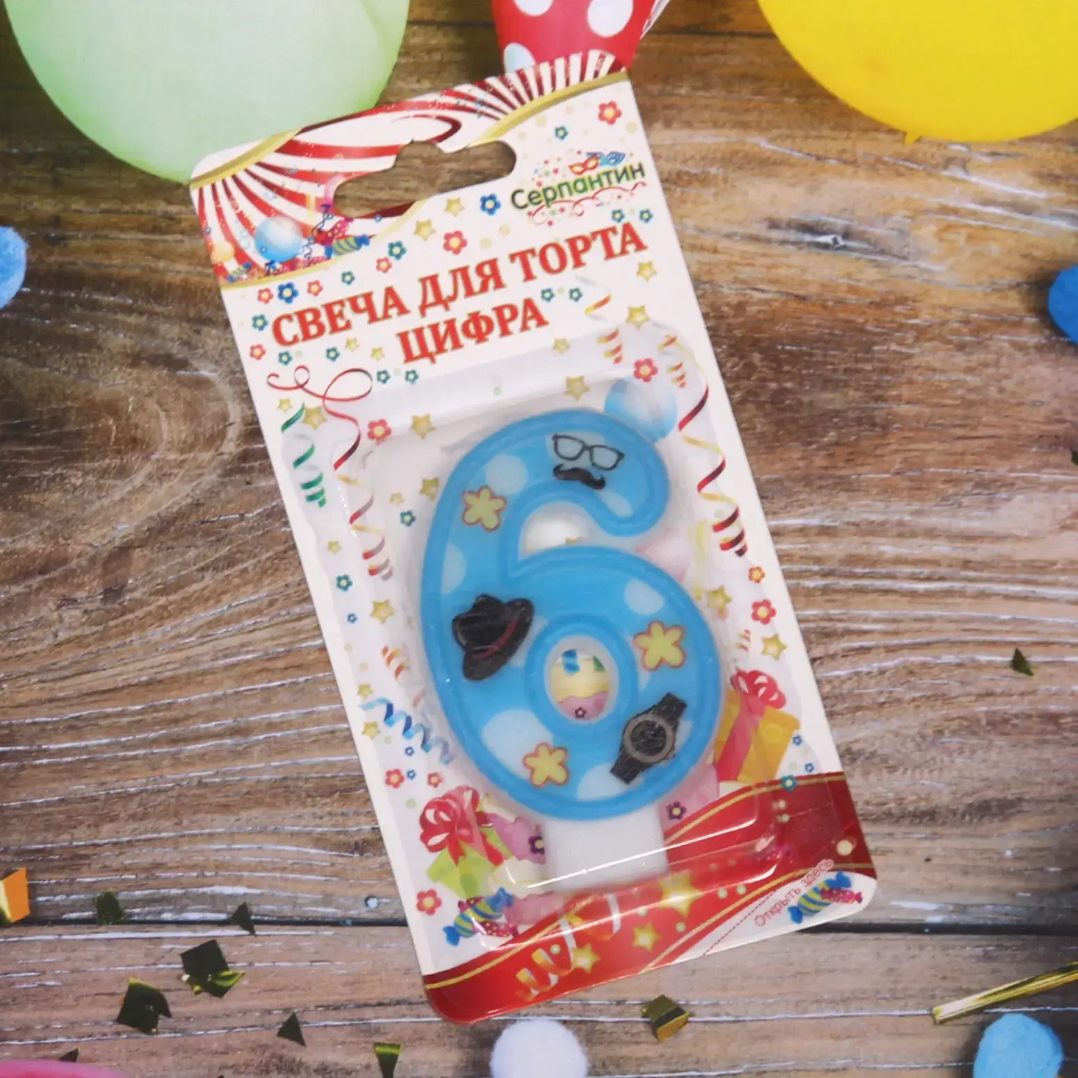 Размер свечи составляет 6 см, что делает ее подходящей для большинства тортов. Материал — парафин, который обеспечивает хорошее горение и красивый внешний вид. Упаковка оформлена в праздничном стиле с элементами конфетти и гирлянд, что добавляет дополнительный шарм вашему празднику.
