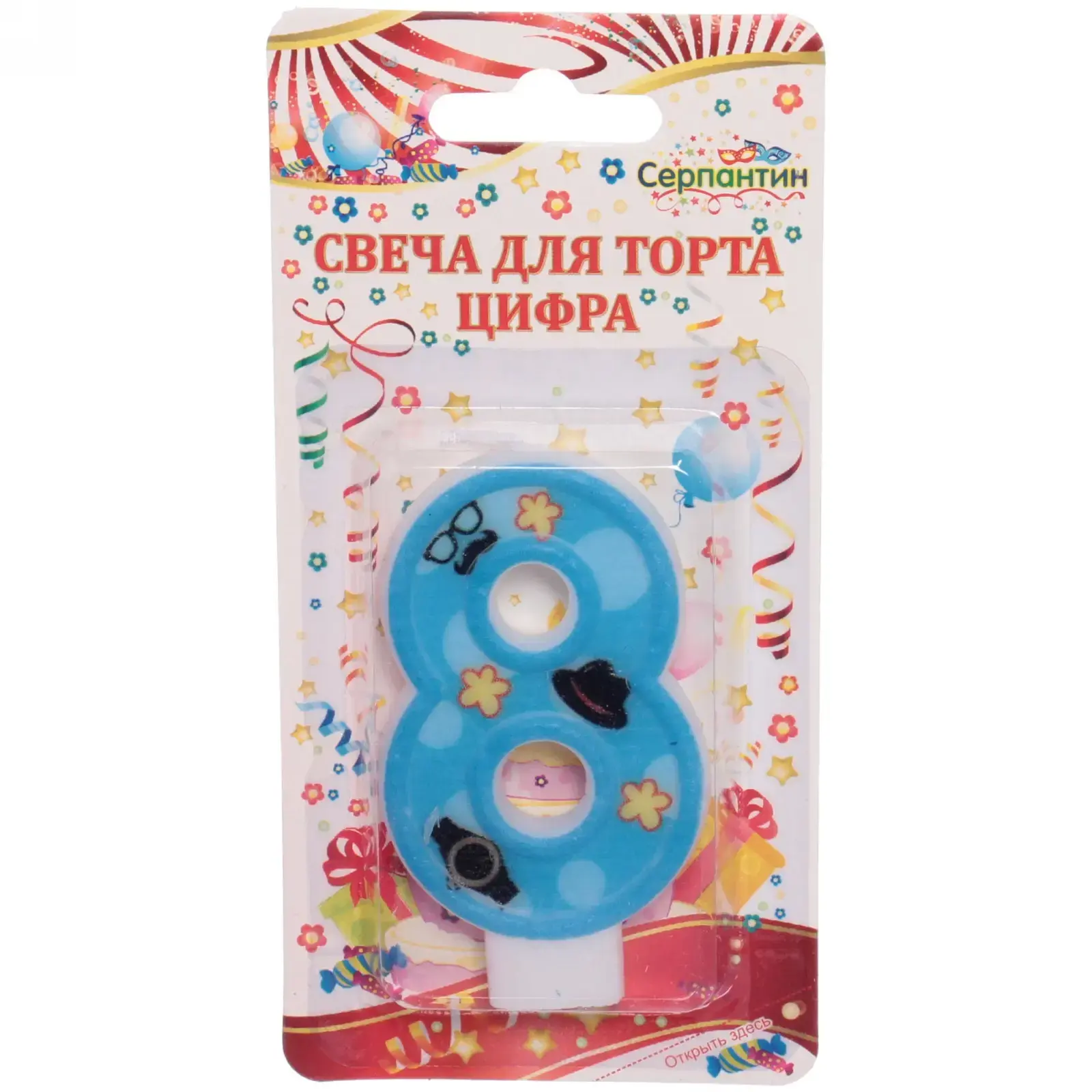 Свеча для торта в форме цифры 8 — это идеальный элемент для украшения вашего торта на день рождения или любое другое торжество. Яркий голубой цвет и оригинальный декор в виде цветочков, очков и шляпки создадут веселое настроение и добавят ярких красок в ваш праздник. Эта свеча не только украсит торт, но и станет отличным акцентом на праздничном столе.