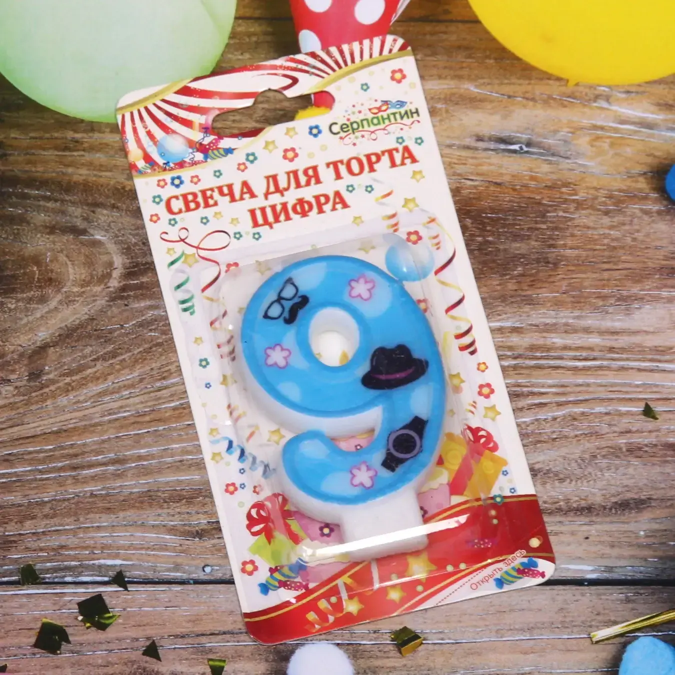 Свеча для торта в форме цифры 9 — это идеальный способ добавить яркие акценты к вашему празднику. Она выполнена в красивом голубом цвете и украшена оригинальными декоративными элементами, такими как цветы, очки и усики, что делает её не только функциональной, но и стильной. Эта свеча станет настоящим украшением любого торта и создаст атмосферу веселья и радости.