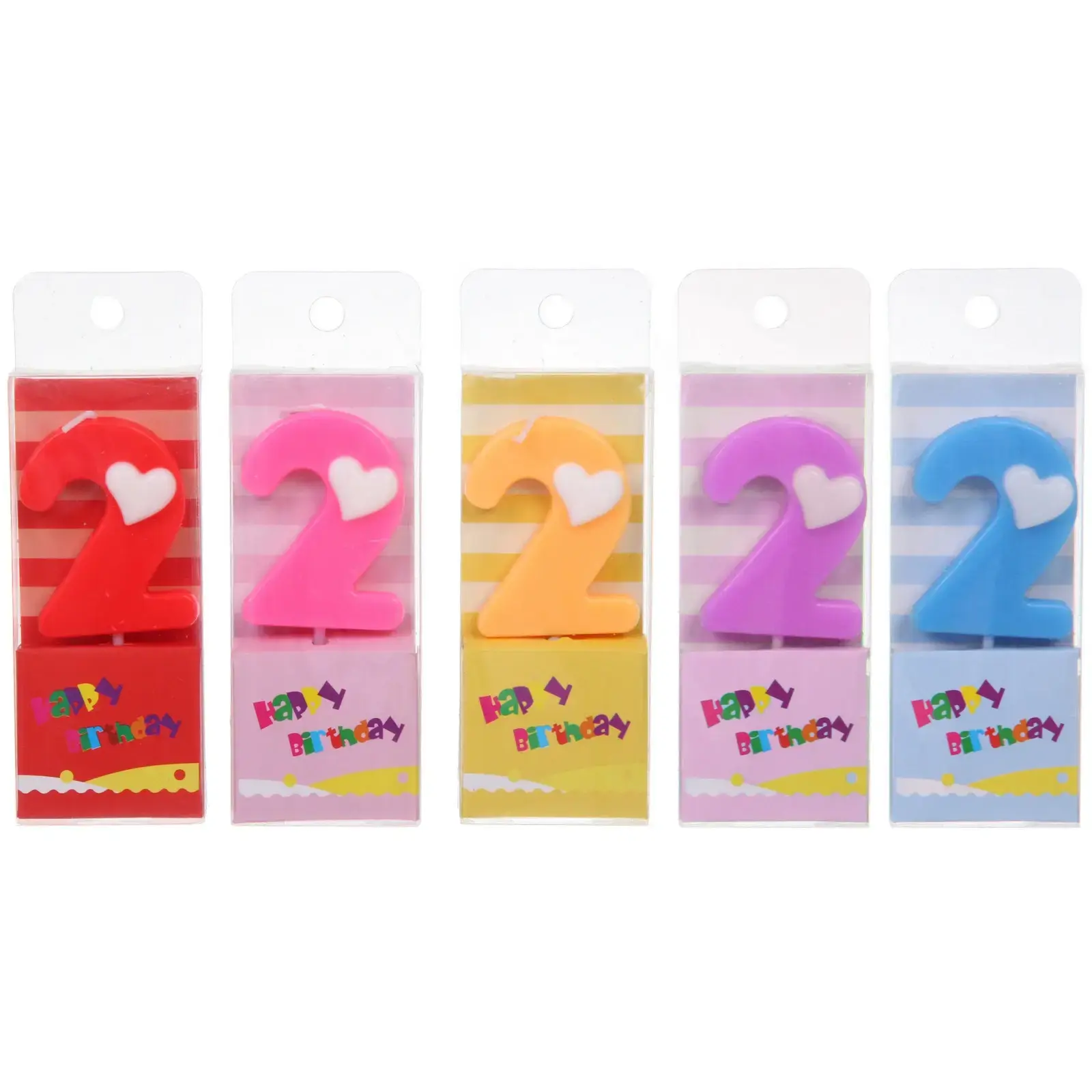 Размер свечи составляет 9 см, что делает её идеальной для стандартных тортов. Каждая свеча украшена белым сердечком, что добавляет ей уникальности и очарования. Упаковка оформлена в праздничном стиле с надписью «Happy Birthday», что делает её отличным подарком для любого именинника.