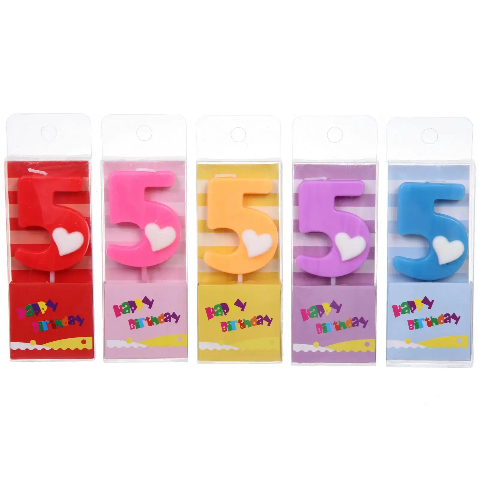 Яркая свеча для торта — цифра 5 с сердечком