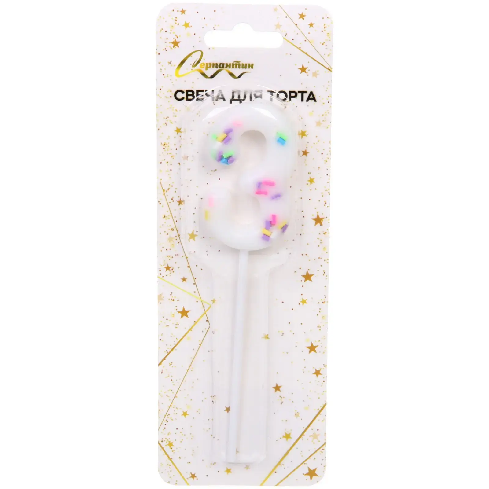 Свеча для торта в виде цифры «3» — это идеальный элемент для вашего торжества. Она добавит яркие эмоции и создаст атмосферу радости на любом празднике. Выполненная в белом цвете с разноцветными фигурными конфетти, эта свеча станет настоящим украшением вашего торта и привлечет внимание всех гостей.