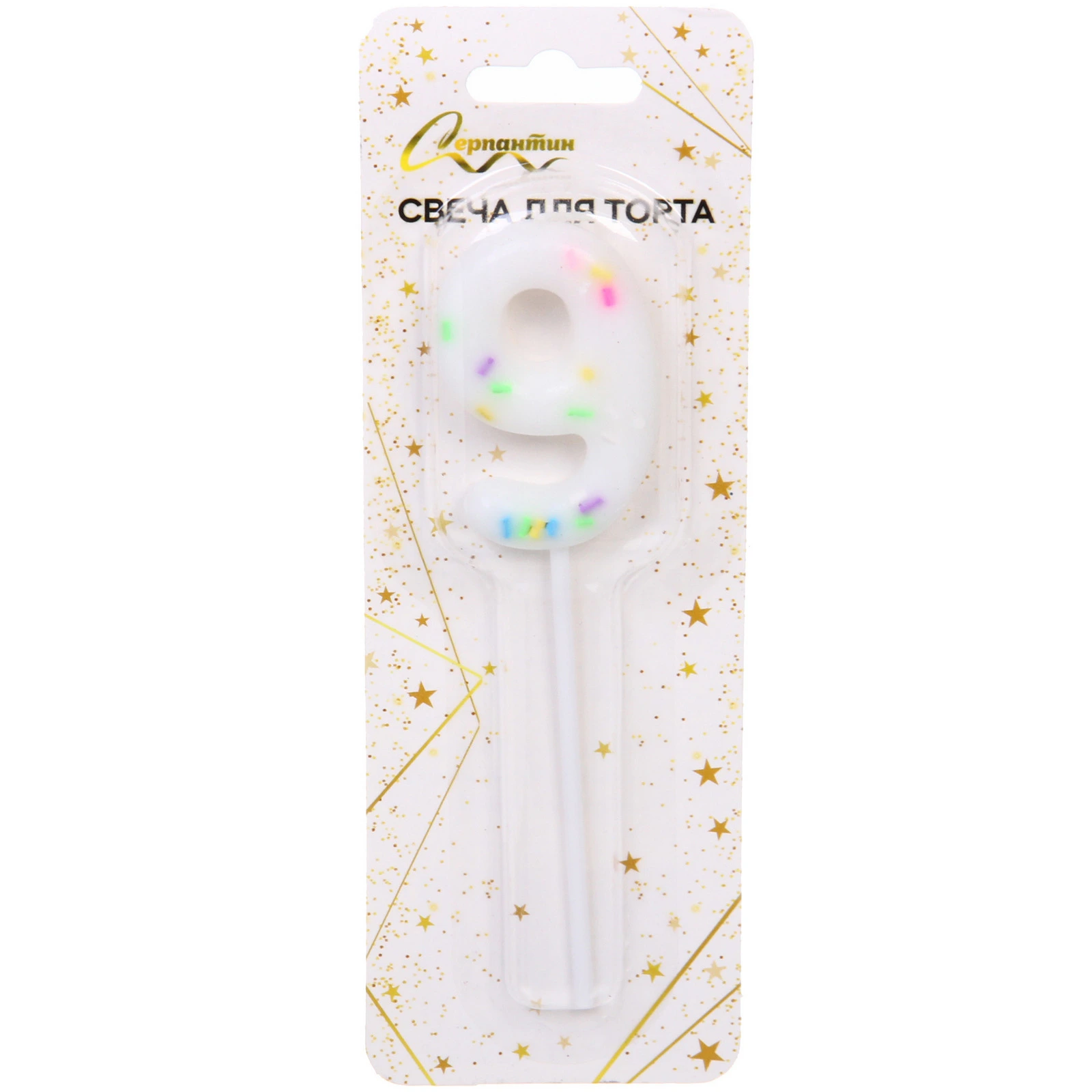 Украсить торт красиво и легко — свеча для торта в виде девятки не только привлечёт внимание гостей, но и создаст особую атмосферу торжества. Яркие разноцветные точки на белом фоне создают впечатление конфетти, подчёркивая радость момента.