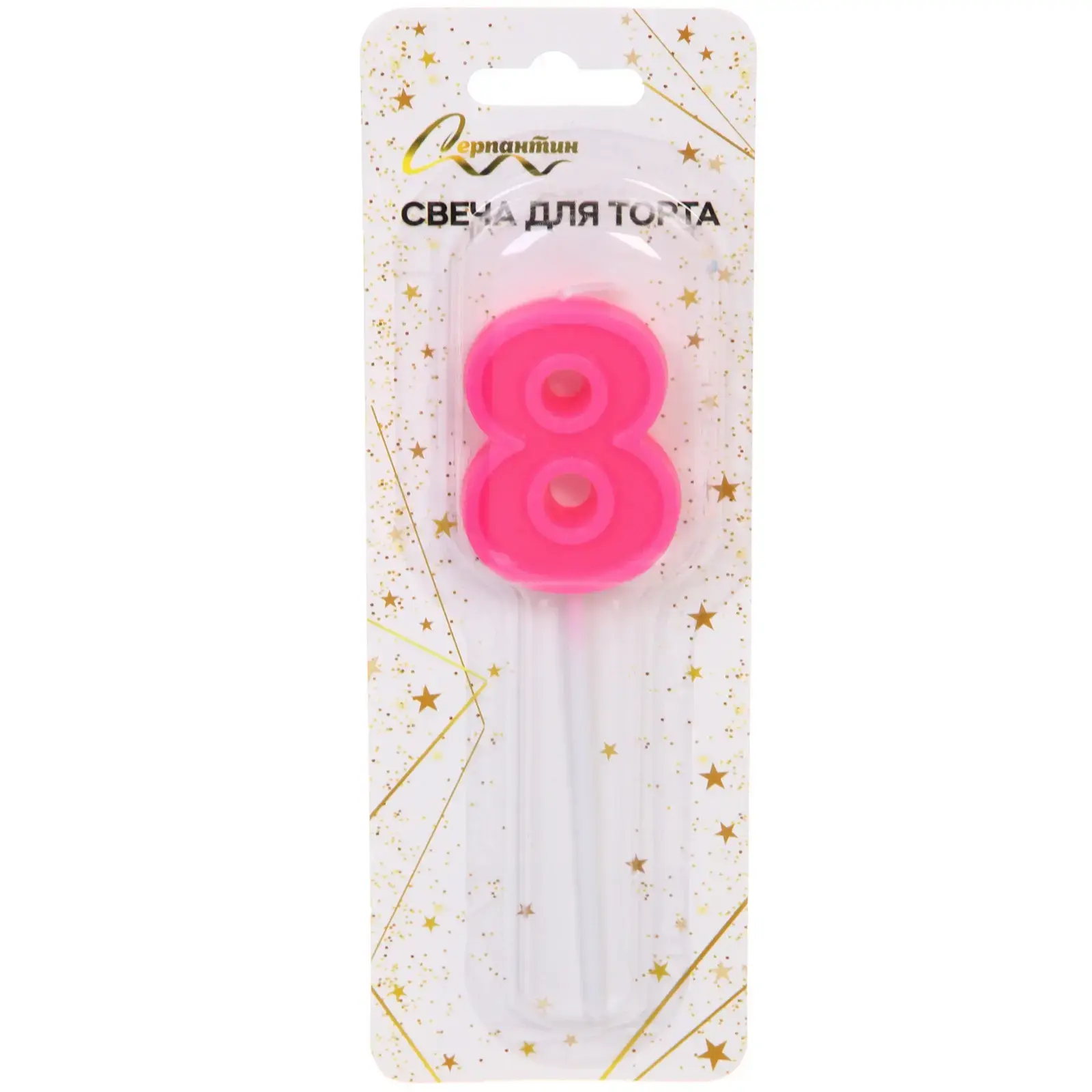 Размер свечи составляет 12 см, что делает её заметной на любом торте. Ярко-розовый цвет и округлая форма добавляют ей привлекательности. Упаковка украшена золотыми звёздочками, что придаёт дополнительный праздничный вид. Не забывайте о безопасности: никогда не оставляйте зажженную свечу без присмотра и используйте её только под контролем взрослых.