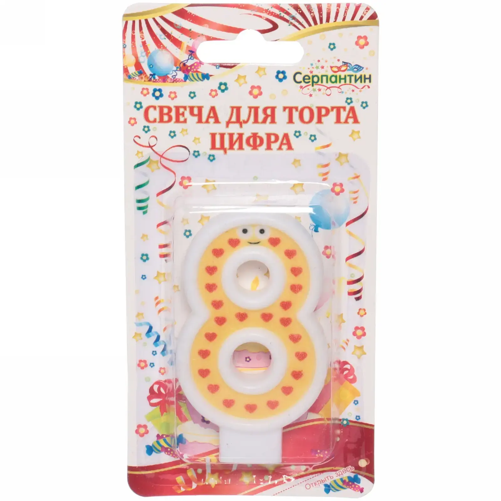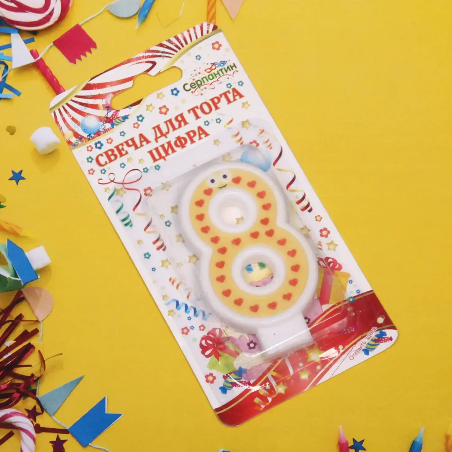 Погрузитесь в атмосферу радости и уюта с декоративной свечой в форме цифры 8. Такой акцент на праздничном столе помогает создать запоминающуюся атмосферу, подчеркивает значимость события и дарит удовольствие как детям, так и взрослым. Оригинальный дизайн с улыбающимся лицом и яркими красными сердечками добавит индивидуальности вашему торту и подчеркнет уникальность праздника.