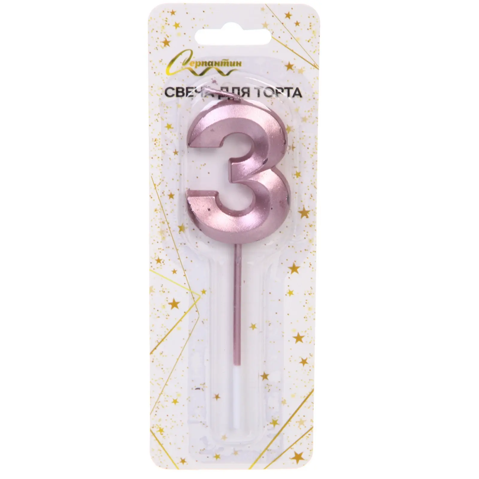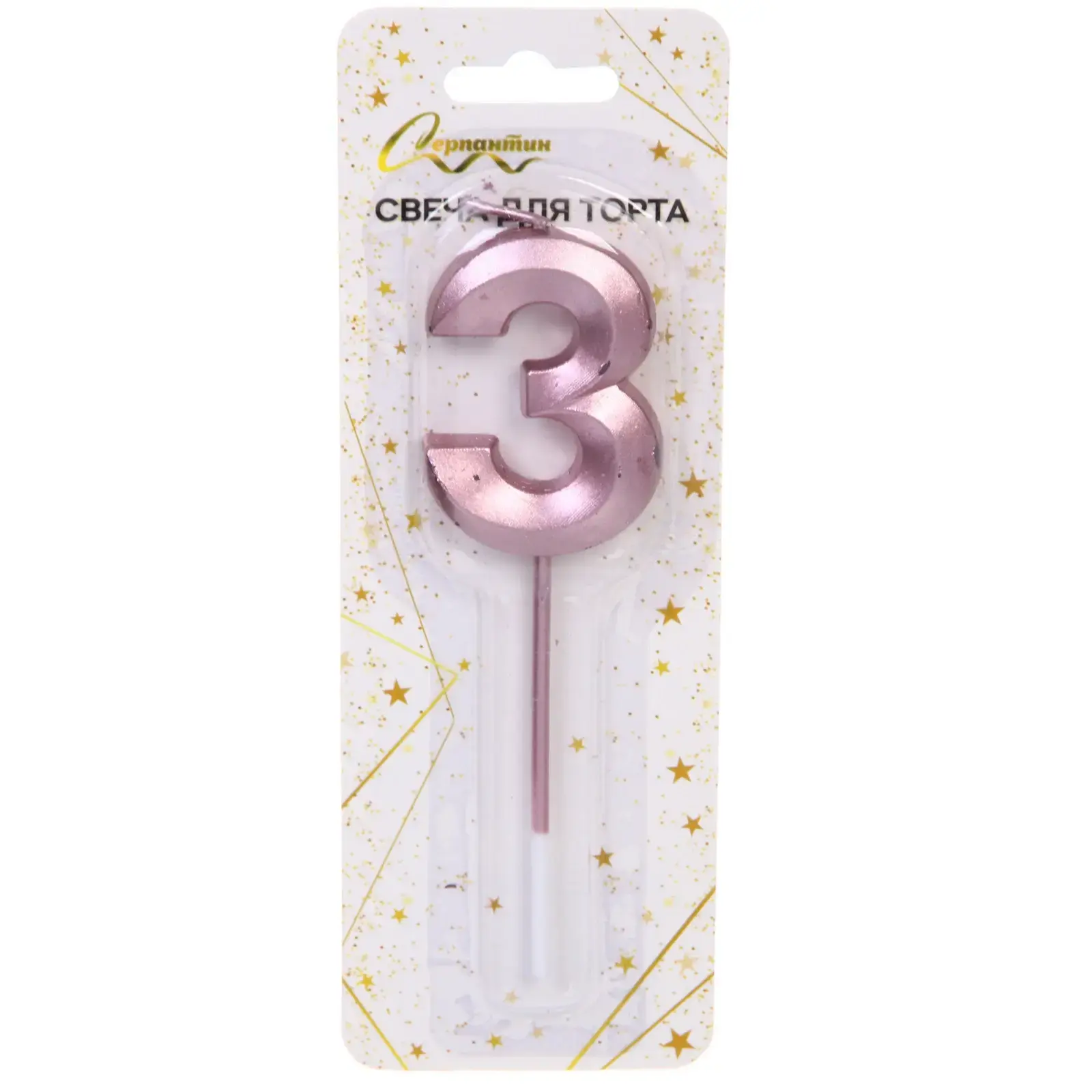 Подарите особое настроение и создайте атмосферу настоящего волшебства с помощью свечи для торта в форме цифры «3» с глянцевой поверхностью в оттенке розового золота! Этот аксессуар способен подчеркнуть важность момента и сделать фотографию торта эффектной, а само событие — запоминающимся.