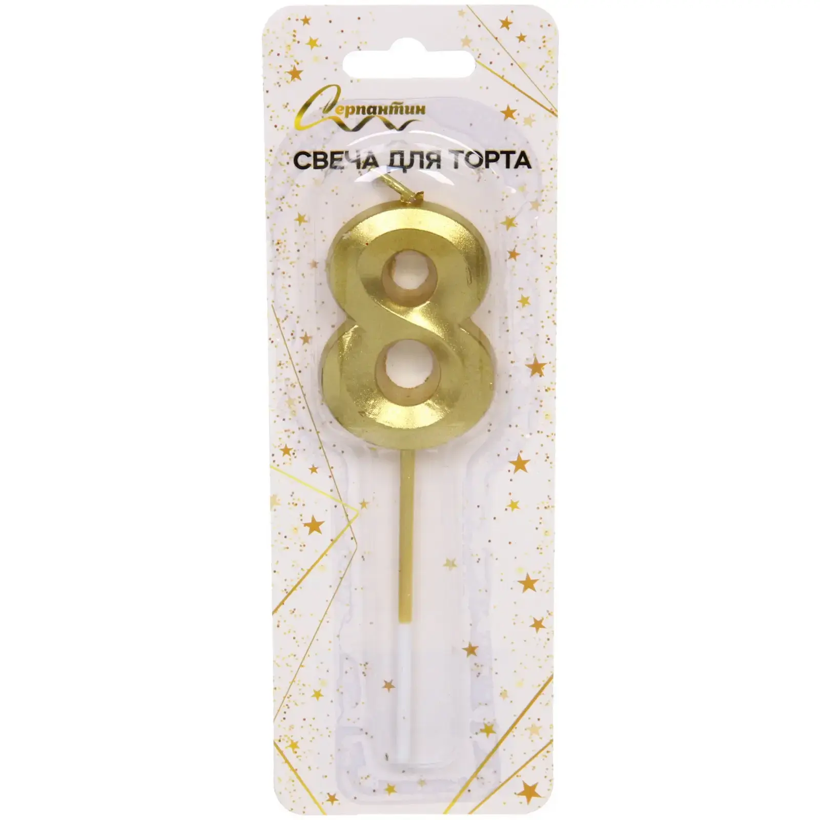 Свеча для торта в форме цифры 8 — это идеальный способ добавить яркие акценты к вашему торту и сделать праздник незабываемым. Золотистый цвет и блестящая поверхность свечи создают атмосферу торжества и радости, а ее объемная форма привлекает внимание и радует глаз.