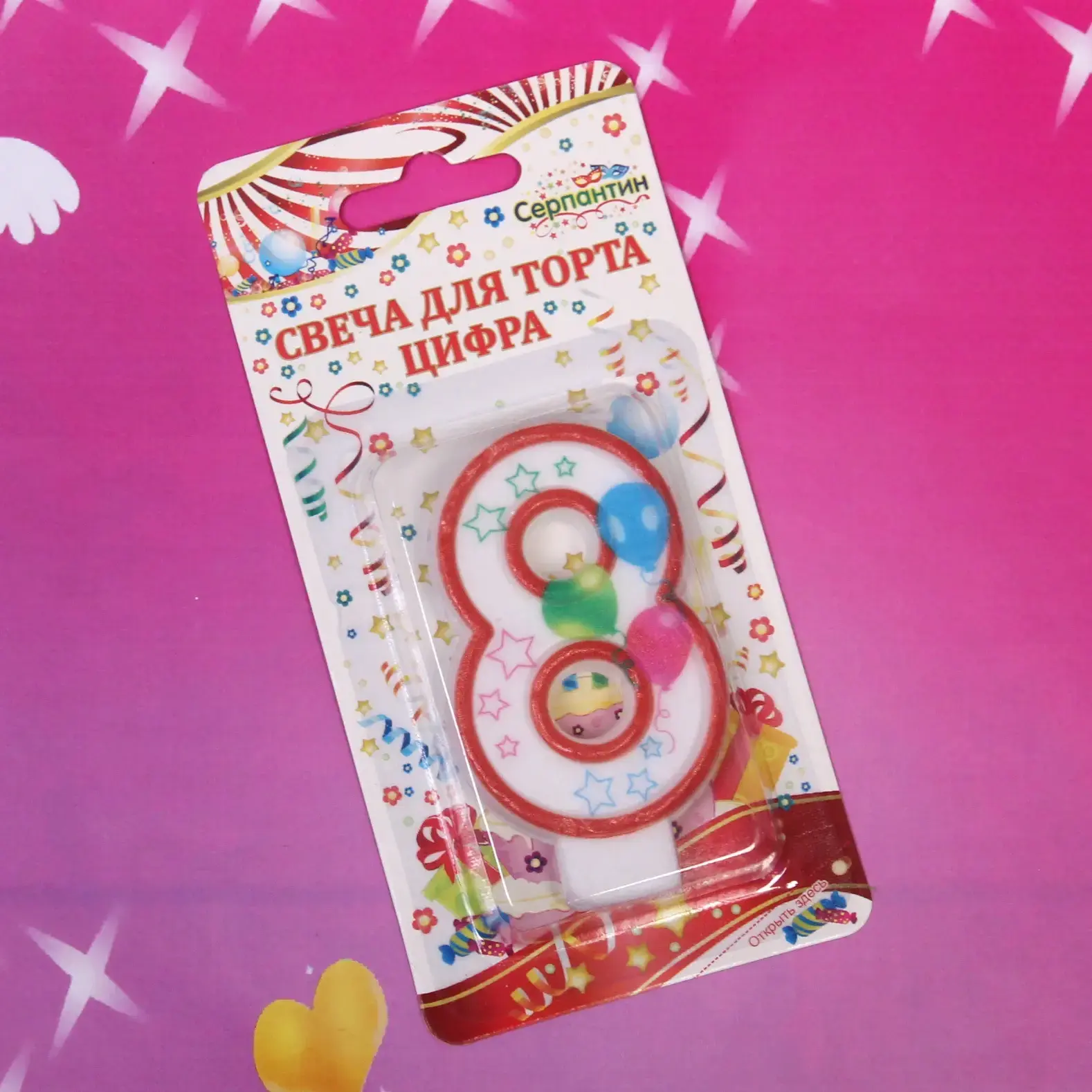 Свеча для торта в форме цифры '8' — это идеальный способ добавить яркие акценты к вашему празднику. Она не только украсит торт, но и создаст атмосферу веселья и радости. Яркий дизайн с разноцветными шариками и звездами привлечет внимание гостей и сделает ваш праздник по-настоящему особенным.